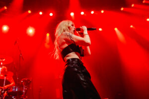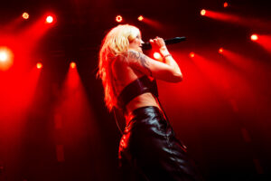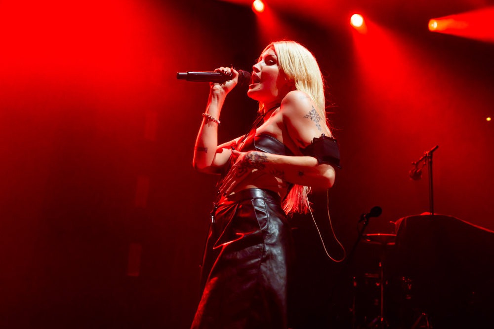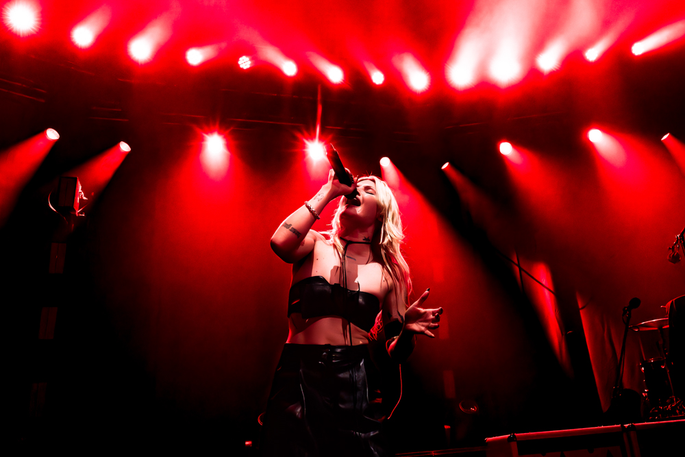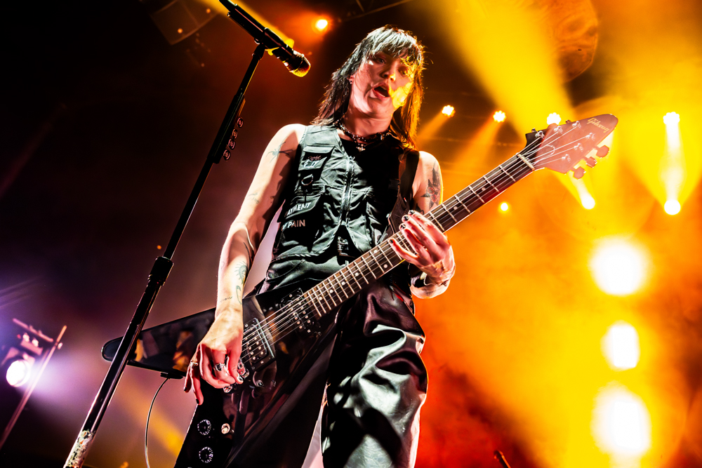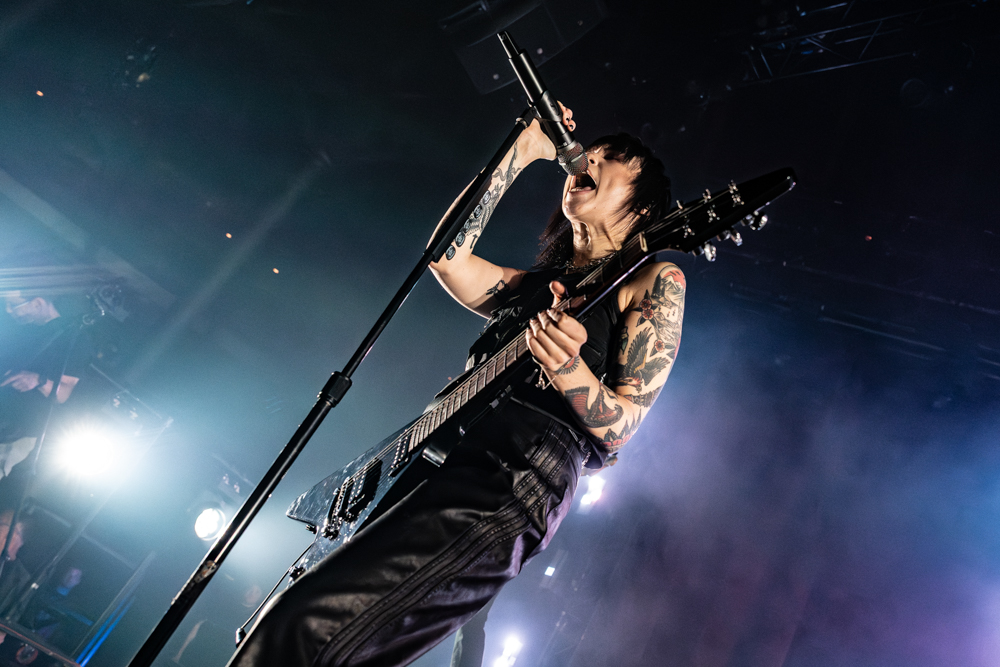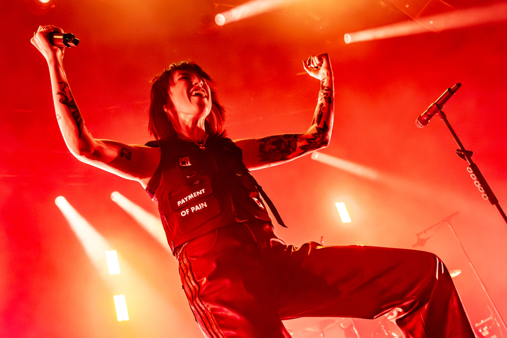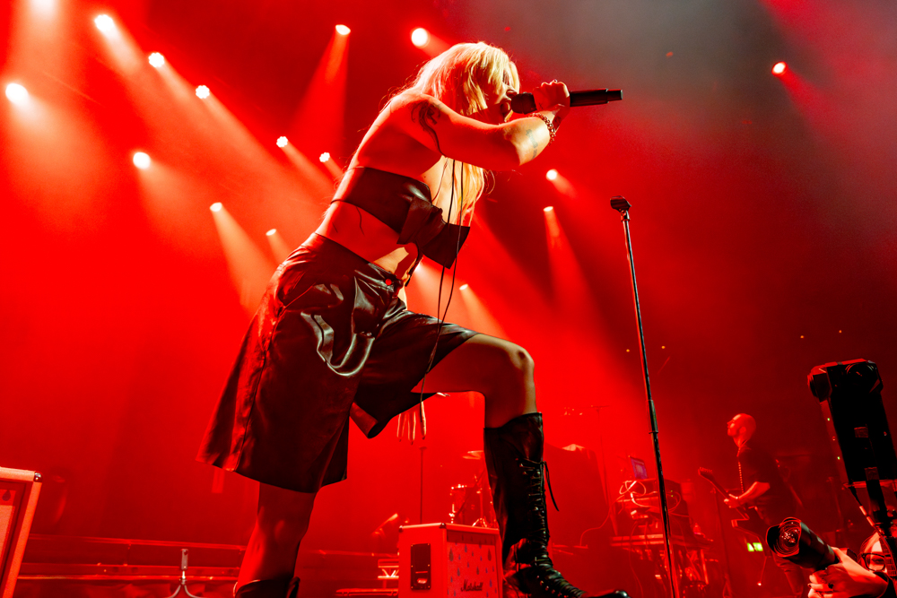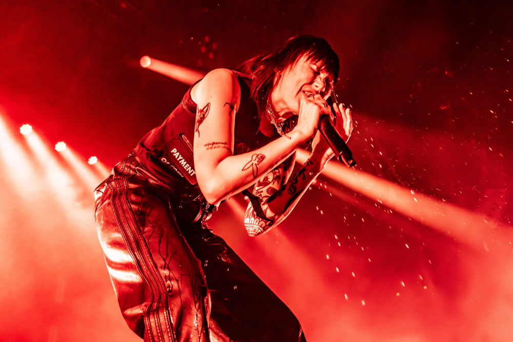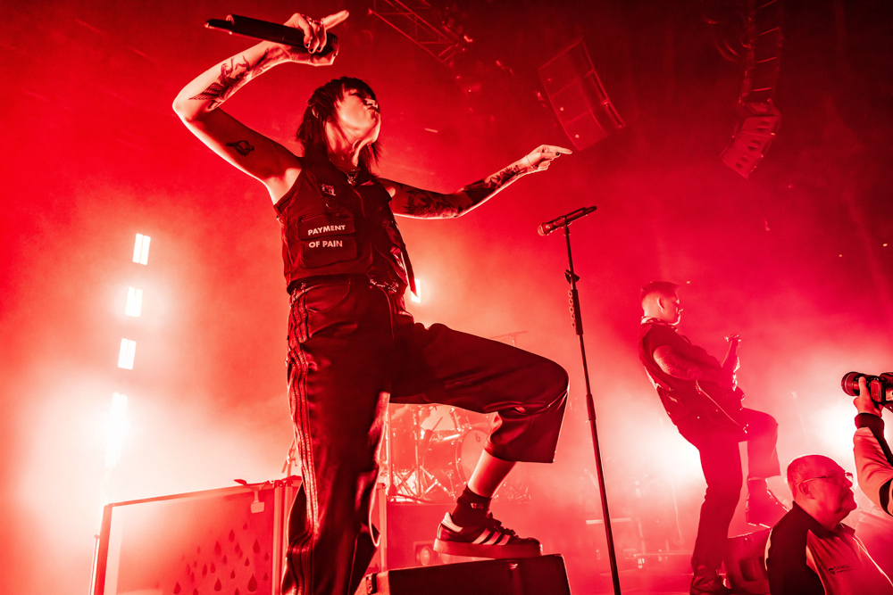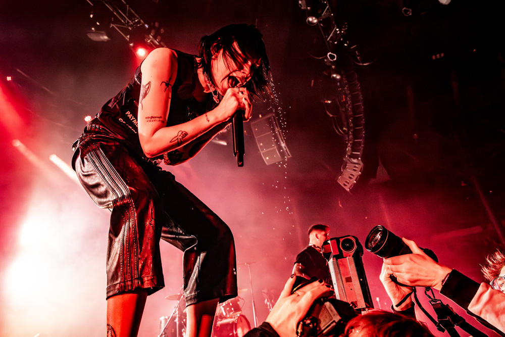 Musically, the night was a testament to their fearlessness. Hot Milk are not interested in playing it safe. This was best exemplified by “Candy Coated Lie$ (Nightmare Version).” Taking one of their most popular, poppy tracks and twisting it into a grinding, industrial monster was a gamble. It stripped away the polish to reveal the ugly, angry heart of the song, challenging the audience to embrace the darkness rather than just dance through it. The crowd didn’t flinch; they embraced the noise, headbanging in unison to the distorted breakdown. The political edge of “Insubordinate Ingerland” saw the room unite in shared frustration, a collective middle finger to the state of the world, before the set took a sharp turn into vulnerability.