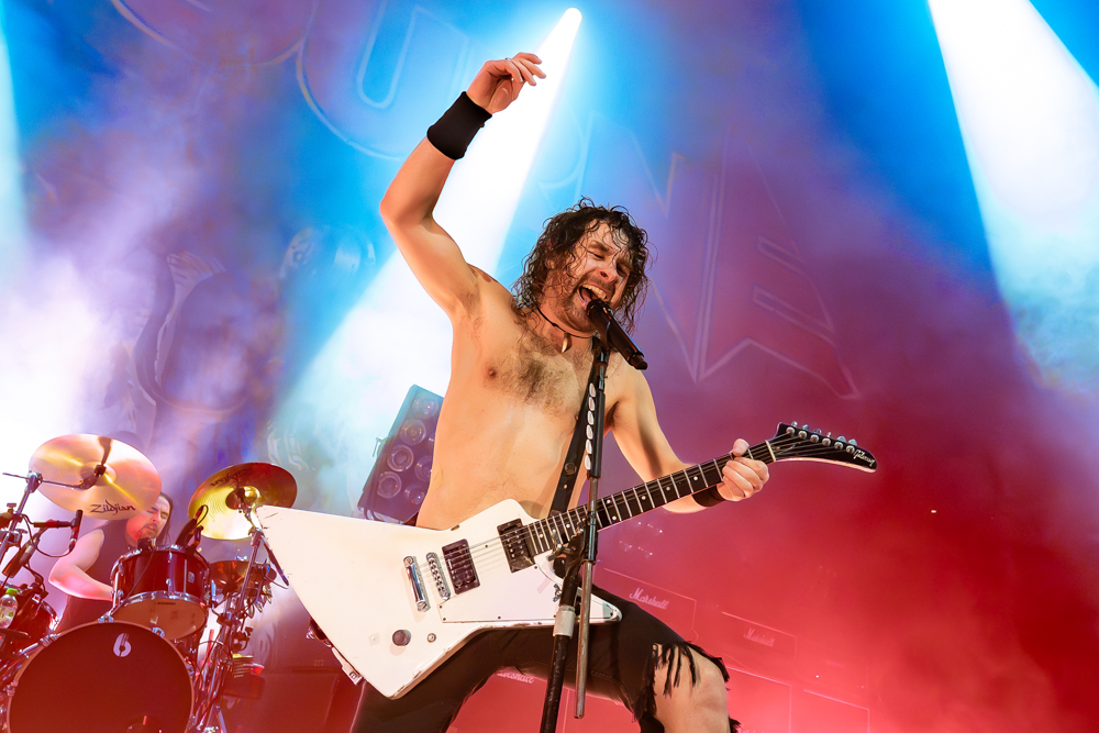Airbourne understands that rock and roll is the ultimate escapism. Midway through the set, during a blistering rendition of “Raise the Flag,” O’Keeffe took the absolute chaos directly to the floor. Parting a sea of fans, he shredded a ferocious solo while riding on the shoulders of a roadie straight through the heart of the mosh pit. Add in his signature ritual of smashing a fresh tinny against his skull until the aluminum ruptured in a sticky, yeasty baptism, and it was pure, unscripted joy, the kind of wild, raw, high-voltage theatre that keeps the flame of rock burning.