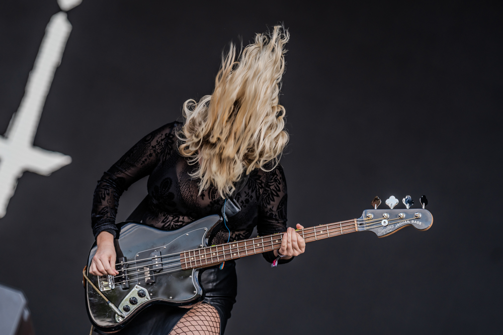 Konvent’s Friday slot on the Ronnie James Dio Stage felt less like a set and more like an initiation into a cult of slow, suffocating heaviness. The Danish death-doom four-piece draped Catton Park in an oppressive atmosphere from the first note, their riffs rumbling like distant thunder while Rikke Emilie List’s vocals tore through the gloom, deep, cavernous growls one moment, piercing shrieks the next.
