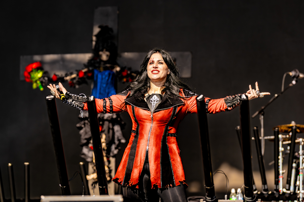 Cristina Scabbia was a force of nature. One minute her voice soared with cinematic beauty, the next it cut through the air like a blade. Andrea Ferro matched her intensity with snarling precision, and once the early sound gremlins were chased away, the band hit full stride.
