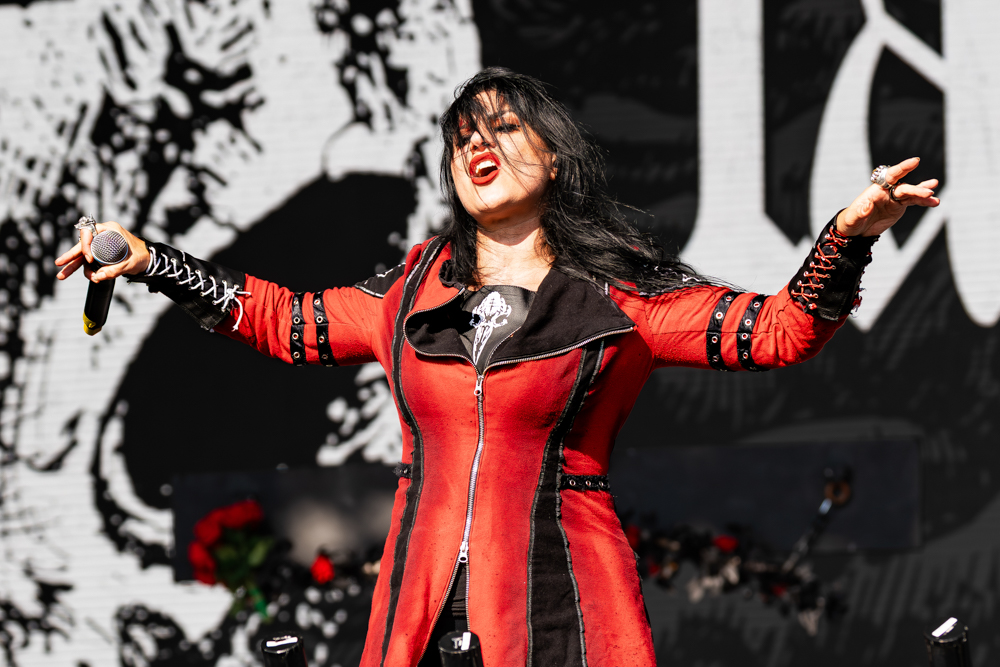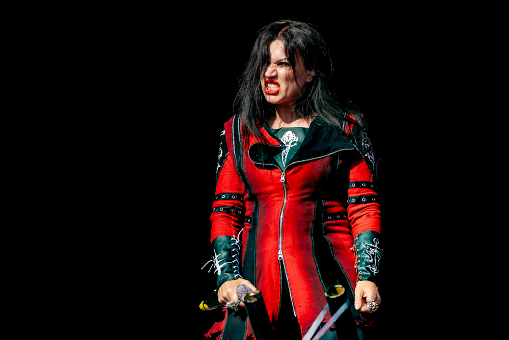 It’s been over ten years since Lacuna Coil last graced Bloodstock, and from the moment they finally hit the stage fifteen minutes behind schedule, the air crackled with “about time” energy. Any grumbles vanished the second Layers of Time detonated through the speakers.