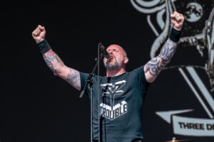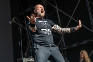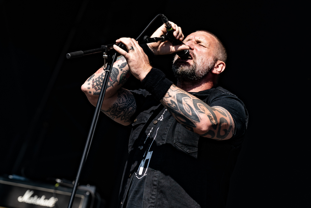 The tent was already heaving before the first note, and when the opening riff hit, the place erupted. Nailbomb’s sound was as savage as ever sounding chainsaw guitars, pummelling rhythms, and that unrelenting, punk soaked rage that made them infamous. Each track landed like a strike from a sledgehammer, shaking the crowd into a frenzy.