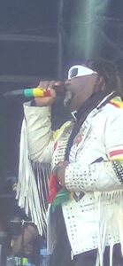 If you are searching for a band who are fit to open any festival round the world, well surely you don’t need to look any further than Skindred! Benji and his fellow Welsh wonders really are one of THE great live experiences as they have a frontman who will enter the stage in this heat in his full multicoloured Honey Monster like suit which is later changed to a white leather jacket with Ozzy esque tassles flying…he will stop at nothing until every single member of the crowd is thoroughly entertained! We kick off with Set Your Fazers and continue through a nine song set which will include L.O.V.E. (Smile Please), Kill The Power and my favourite, set closer , Warning. Yes, the Newport Helicopters were in full flight and every single member of the crowd had a smile on their faces….job done!