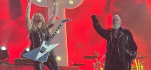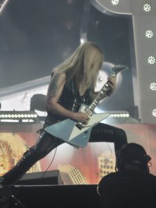Pigs by Black Sabbath as it is cranked up through the PA as they enter the stage. All Guns Blazing is followed by Hell Patrol but the Metal Maniacs don’t have to wait too long before we get hit with a double delight of You’ve Got Another Thing Comin’ and Breaking The Law. Gates Of Hell, Between The Hammer And The Anvil and others sound great but it is the double bass drums and screeching vocals of Painkiller that bring the main part of the set to and end. We do not have to wait too long before we hear the throttle of a Harley Davidson motor bike and the Metal God comes on stage and the Priest launch in to their anthem, Hell Bent For Leather and I am immediately transported back to the Hammersmith Odeon and the Painkiller Tour when I first got to see Judas Priest and I can feel a smile on my lips growing with each riff! Living After Midnight brings the fourteen song set to an end and I hope that this will not be the last time that I get to share some time with these heavy metal heroes!