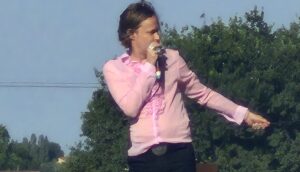 In recent years we have seen the ‘normal’ band set of guitar/bass/drums/vocals challenged with artists creating something new in any number of different guises and Soft Play are no exception. A standing /singing drummer , Isaac Holman is a musician who seems to be on some sort of quest to bring the Warzone Stage audience to one great mosh pit. In between songs he stalks the stage, looking the audience in the eyes insisting that they mirror the excitement and exuberance that they see. His partner in crime is Laurie Vincent, providing the guitars (and mandolin), a gentleman that I have christened Snake Hips as he dances and shuffles round the stage throughout this electric performance.