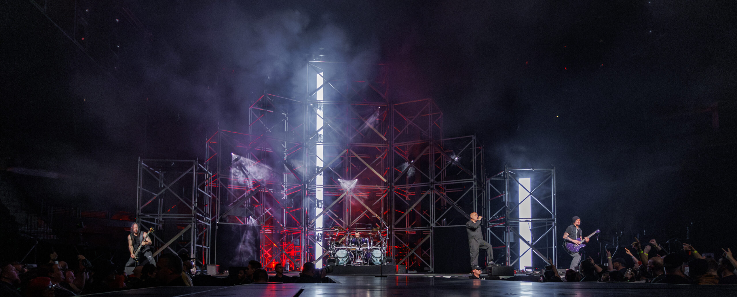 Disturbed has kicked off 2025 by foreshadowing the future while also looking to the past. The band has embarked on ‘The Sickness 25th Anniversary Tour’ to celebrate the release of their debut album ‘The Sickness’ which was released in 2000. The album is now five-times platinum and spent 106 weeks on the Billboard 200. More importantly, the album laid the foundation for a career that has lasted for over two decades and still shows no signs of slowing down. Proof of this is the brand new single “I Will Not Break,” taken from an upcoming release which will be their ninth album. The current North American Tour has 34 dates and features them playing the entire “The Sickness” album and then playing a second set of songs scattered throughout the discography. The tour made a stop at the Target Center in Minneapolis, Minnesota with Three Days Grace and Sevendust providing support.
