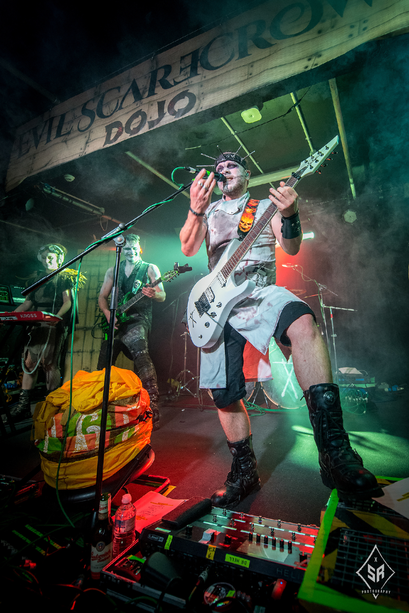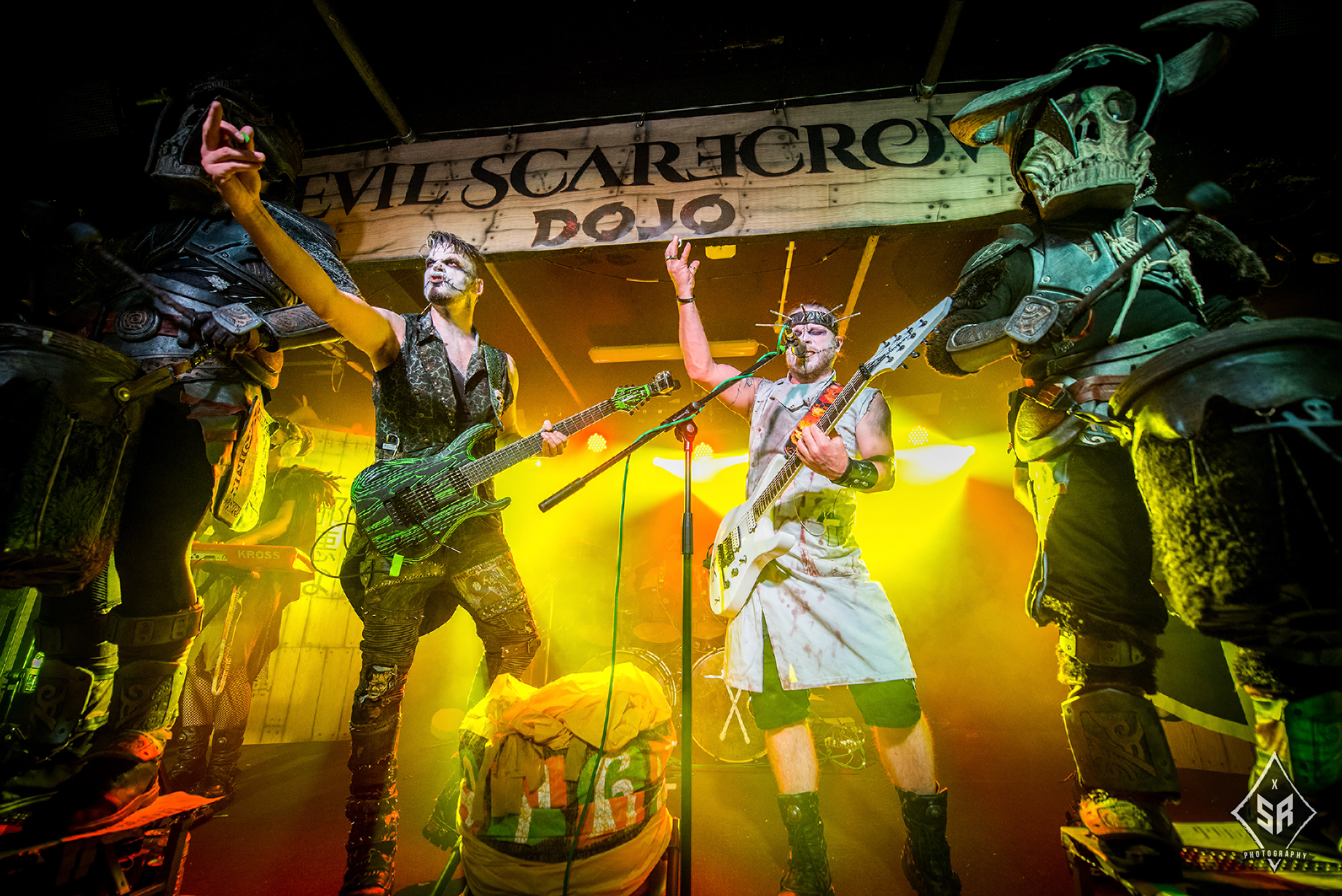 It was Hallowe’en and nothing could stop UK’s metal fun machine Evil Scarecrow from bringing the pack Manchester Academy 3 room some much needed joy. With supports from Footprints In The Custard & In The Whale it was a brilliant night of mayhem and laughs! See the gallery below and reminisce the evening.
