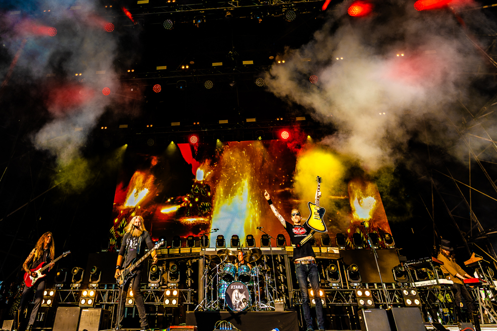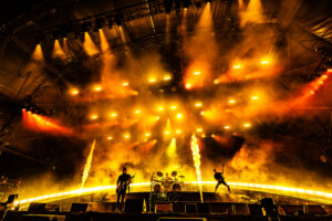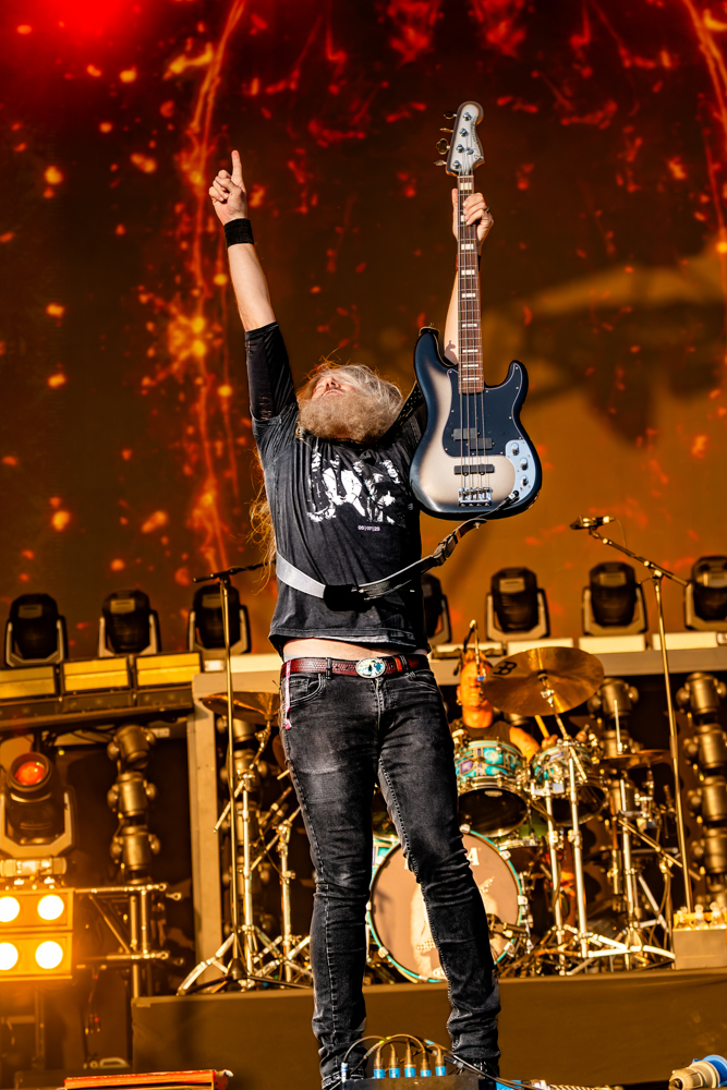 What set the performance apart wasn’t just the sheer weight of the music, but the chemistry on display. There was a looseness, a joy even a tongue in-cheek rock, paper, scissors duel between the guitarists mid song that made the set feel alive. And when the unmistakable opening of Blood and Thunder crashed down, the field erupted into a final, cathartic storm.