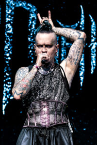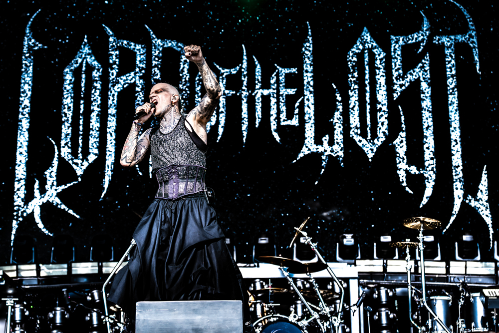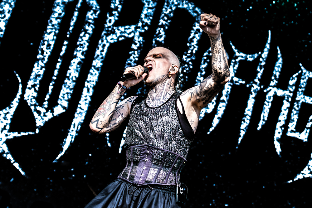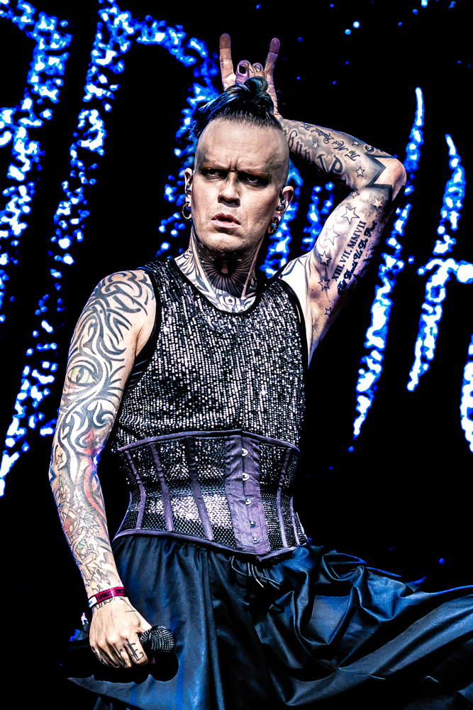 As Sunday evening settled in, the Ronnie James Dio Stage was taken over by the flamboyant force of Lord of the Lost. Striding out in dazzling costumes and ghostly paint, the Hamburg collective wasted no time in wrapping Bloodstock in their darkly theatrical embrace.