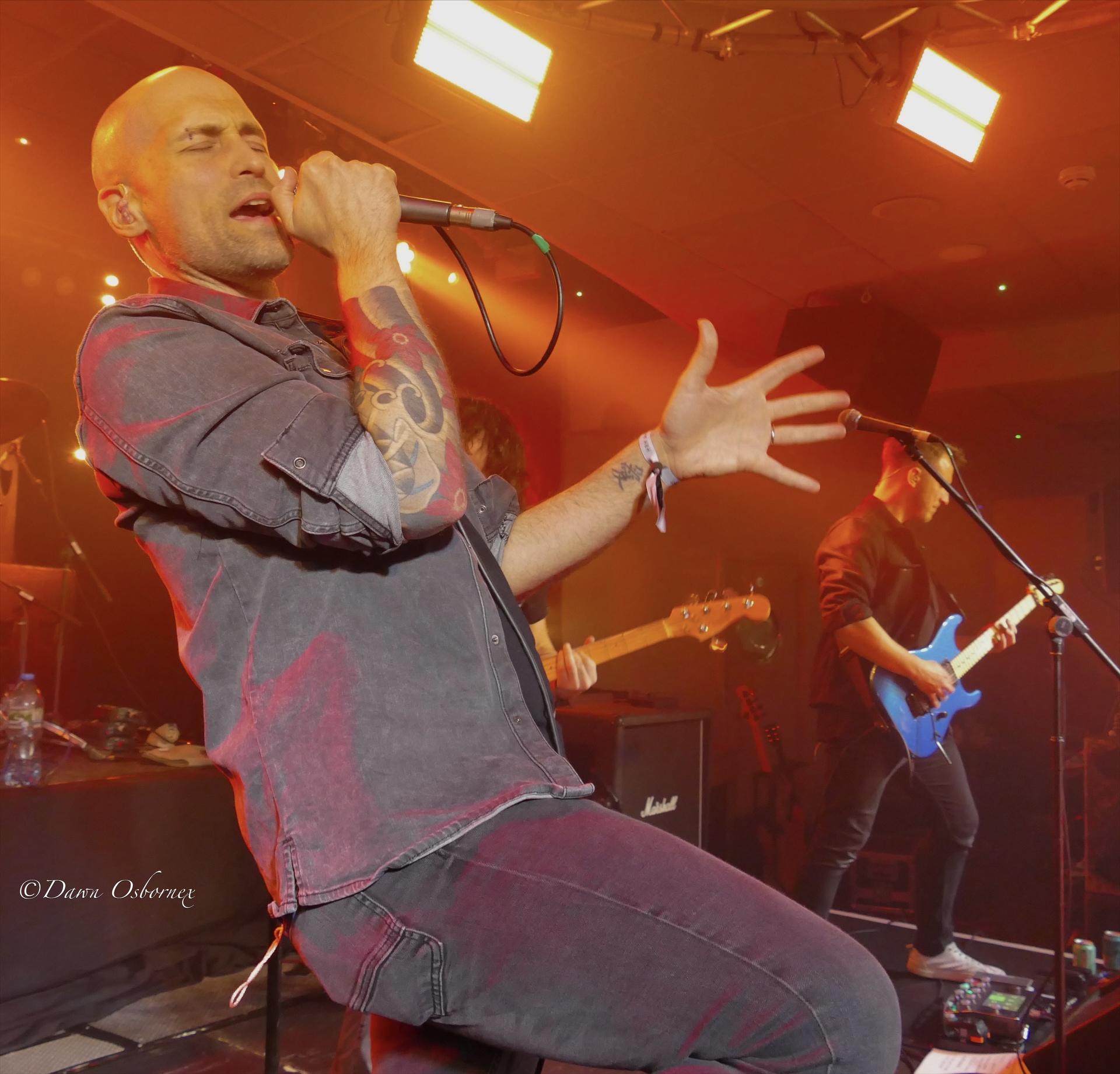 Dead Reynolds from East Anglia began the full electric shows on stage 2 with their energetic alt-rock, mostly with a punky streak, although one of their songs reminded me a bit of Those Damn Crows. They have a singer with a big personality on the barrier reaching out to the crown, a feisty female bassist that is their secret weapon and a drummer spinning his sticks in a commitment to entertainment even at this early hour!