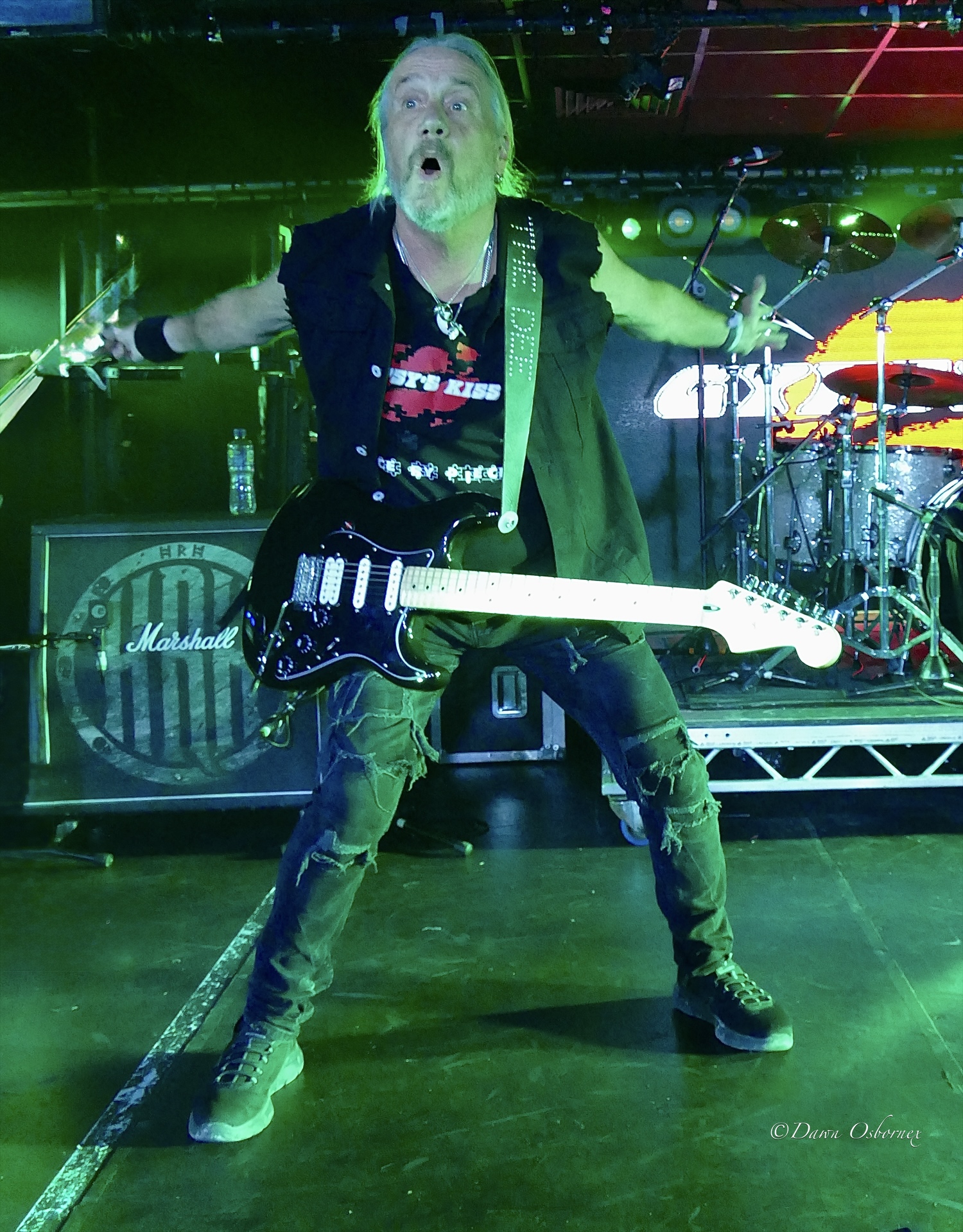 Gypsy’s Kiss by contrast are veterans with fifty years service and a band which used to count Steve Harris in their number. Singer David Smith used to go to school with him and Paul Di’anno. Soaring vocals, traditional guitar solos and a few 70s style space effects. They organise a cheer for Paul Di’anno that he could hear in heaven and the crowd obliged.