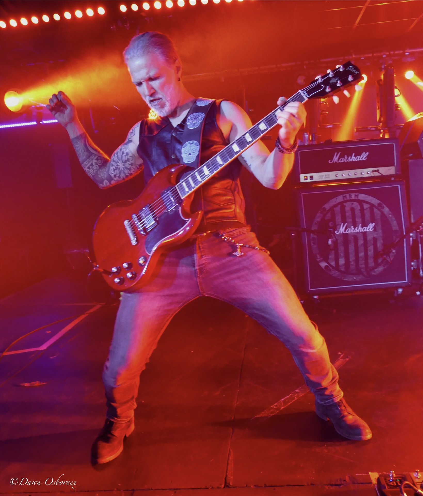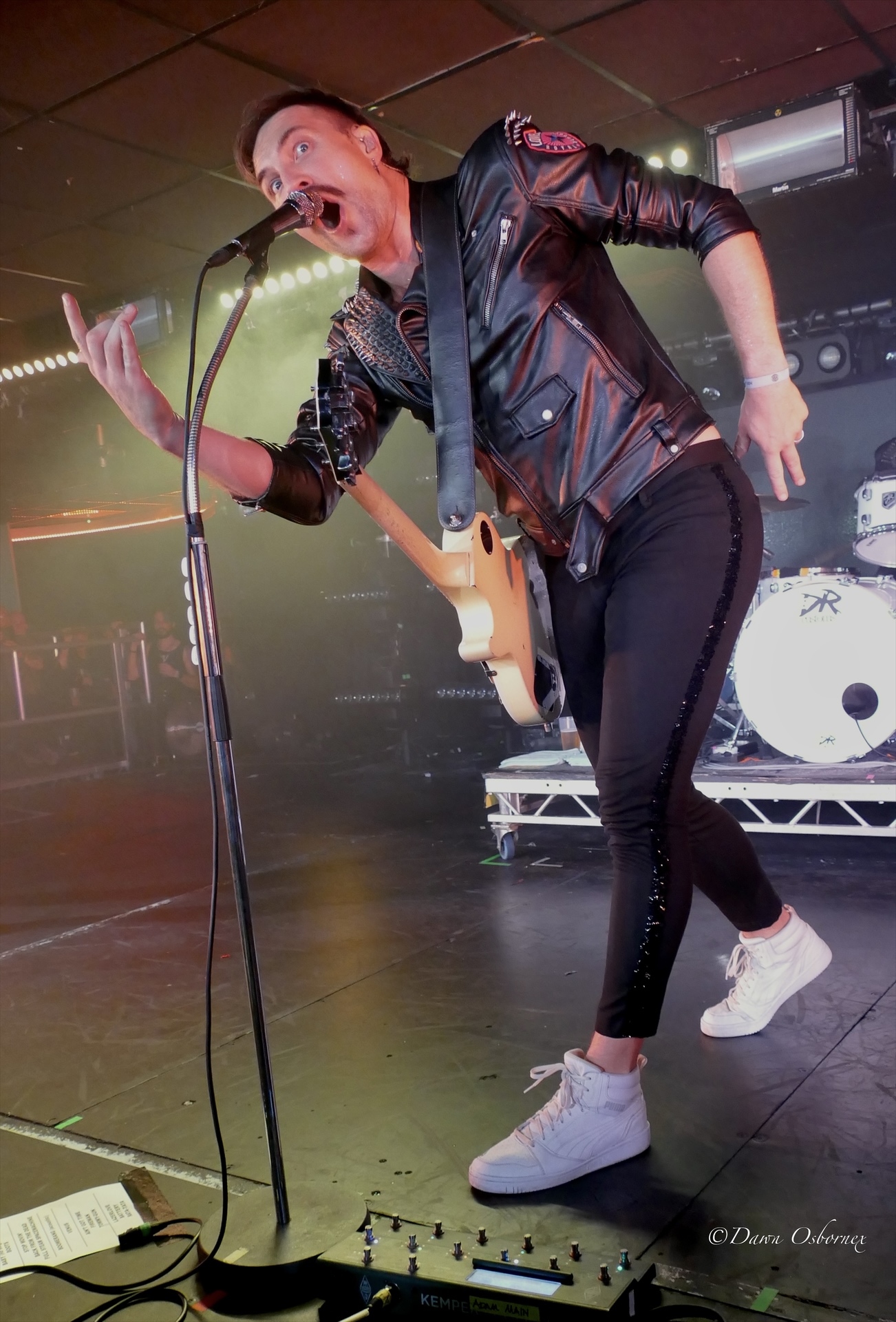 For those about to rock were AC/DC inspired The Dirty Denims. It’s good time Boogie Rock with the only frills being singer Mirjam Sieben’s leopard print hot pants suit with Bowie red lightning flashes echoed by the flashing lightning bolt on her mike stand. They are from the Netherlands, but with her strong raspy voice and energetic engagement with the crowd and Angus style guitar solos most people would assume they must have Australian DNA like the great AC/DC themselves!