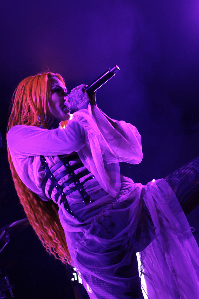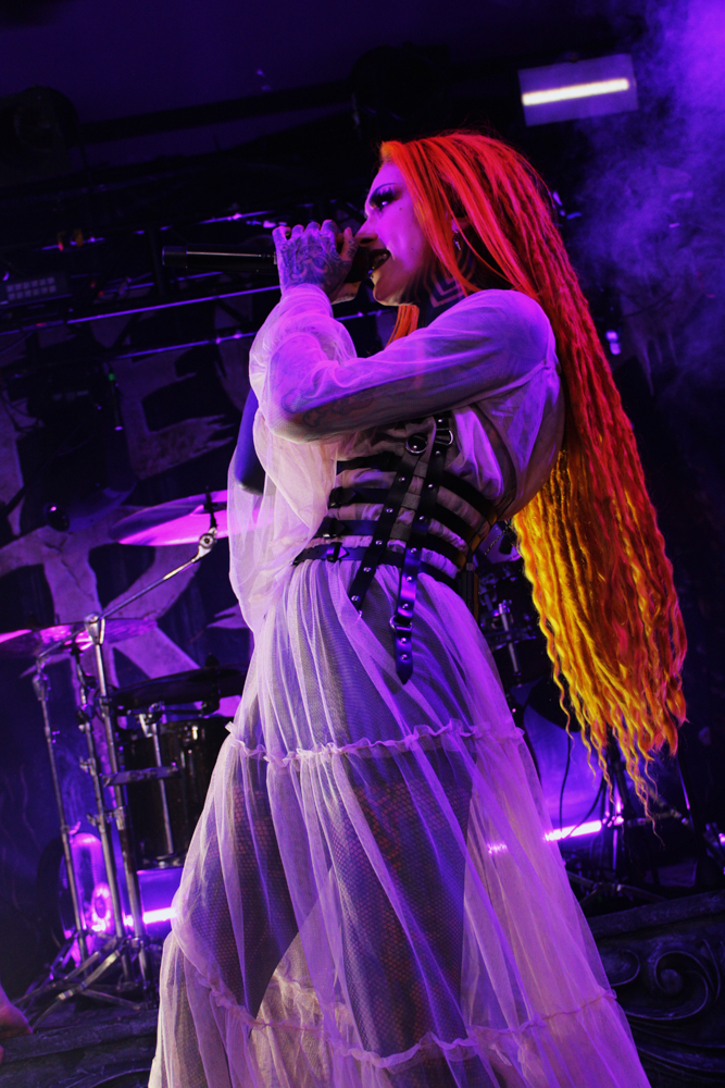 Heidi Shepherd was nothing short of magnetic, commanding every inch of the stage while pulling the audience into her orbit. Her performance blurred the line between frontwoman and ringleader, urging the crowd louder, wilder, and deeper into the chaos. The band delivered a set packed with punch and precision, each track landing harder than the last. Circle pits erupted, voices collided, and for a solid stretch of time, the O2 Institute felt like it might actually lift off its foundations. This wasn’t just a performance, it was controlled mayhem at its finest. By the time Infected Rain took over, the energy in the room was already at breaking point and somehow, they pushed it further.