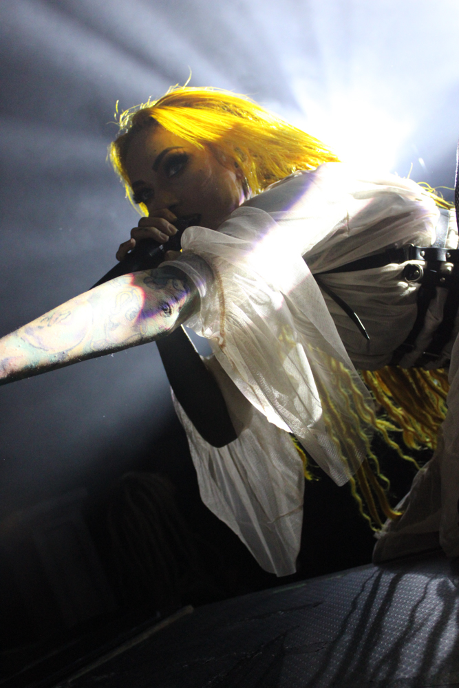 Lena Scissorhands owned the stage with a presence that was impossible to ignore. One moment she was unleashing raw, guttural aggression; the next, delivering haunting melodic lines that cut straight through the chaos. It was this balance, violence and vulnerability that made their set hit so hard. The band tore through a set that showcased their evolving sound, seamlessly blending newer material with fan favourites. Every song felt deliberate, every moment amplified by the crowd’s unwavering energy. And then came one of the night’s defining moments,Heidi Shepherd returning to the stage, joining forces with Infected Rain for a blistering collaboration that sent the room into overdrive. It was the kind of moment you don’t just watch, you feel it.