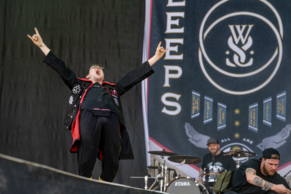 Simultaneously the British metalcore band While She Sleeps heated up the Blue Stage with fast riffs and multiple walls of deaths.