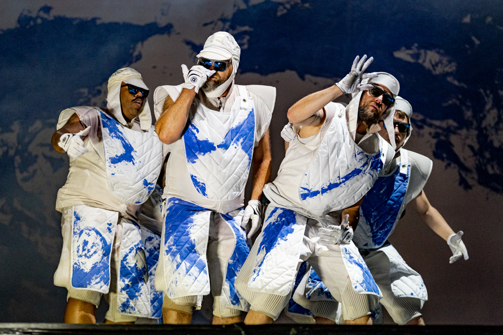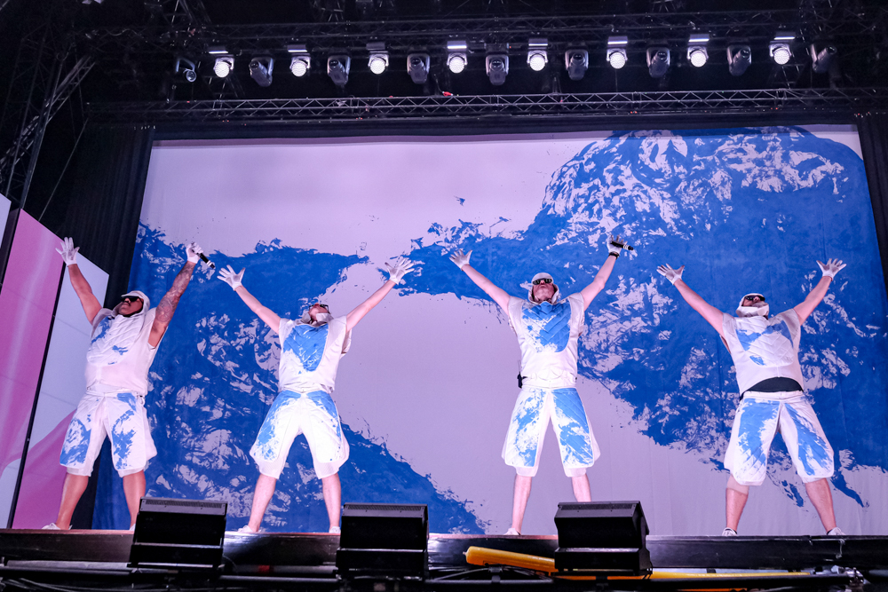 Last but not least Deichkind came on stage and finished the evening strong by delivering a masterful performance with a mix of electro punk and rap with some hip-hop elements. The group, known for their imaginative, theatrical shows won over the audience with visual stage design for each individual song, extreme outfits, crowd surfing with an inflatable boat and driving a huge beer barrel through the crowd.