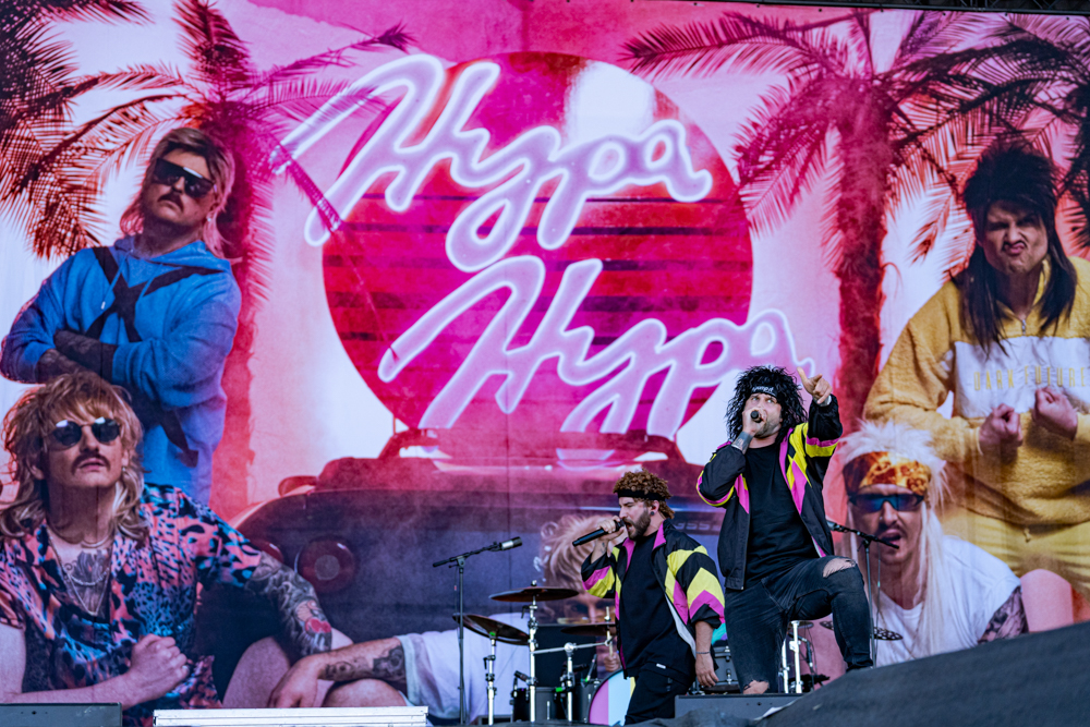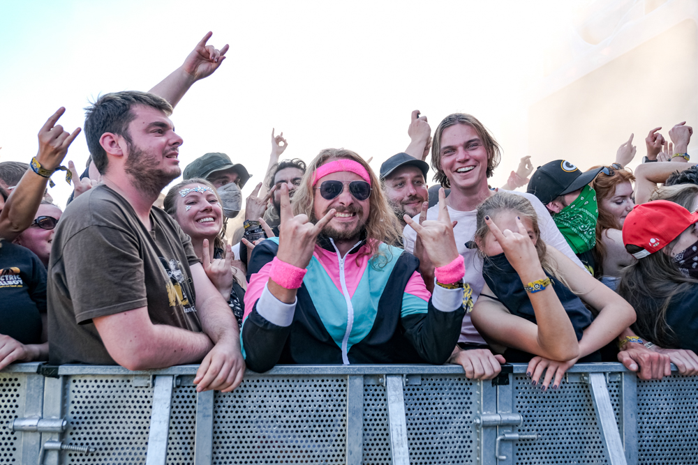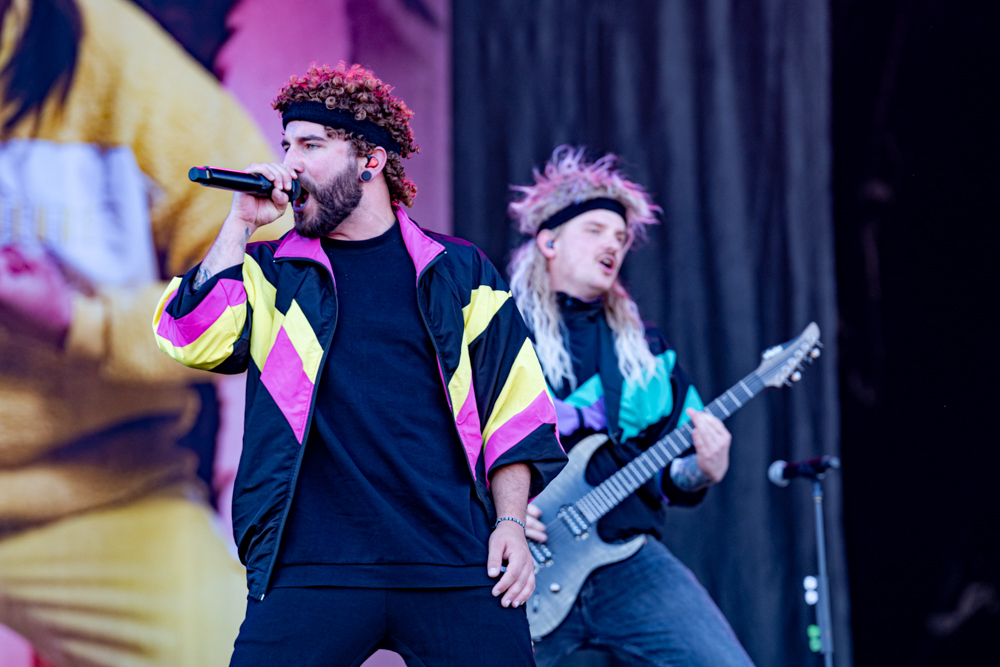 Next up was metalcore mixed with dance elements and plenty of humour. The German band Electric Callboy, formerly Eskimo Callboy, entered the stage with fake wigs and 90s tracksuit jackets and started their setlist with “Pump It” from their latest same-titled album. If you haven’t seen the music video yet, you should definitely check it out. The band had submitted this song for the German 2022 Eurovision entry but had been rejected despite a petition signed by close to 100,000 people. Overall, a fun show with plenty of swirling dust coming up from the moshpits.