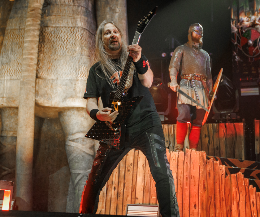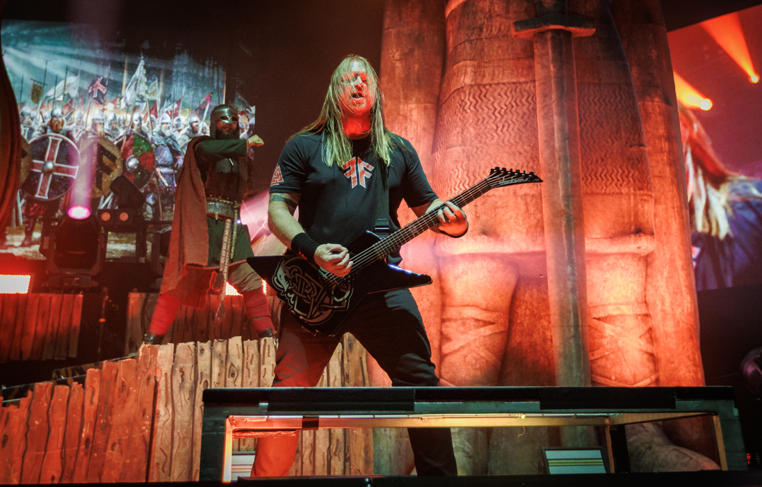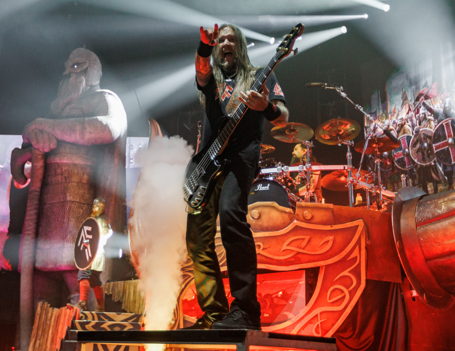 The king’s of Viking Metal, Amon Amarth, took to the stage next. The stunning drum riser of warrior’s helmet sat center stage with a towering statue of a viking warrior of each end of the stage. There was no question the crowd knew who this band that hails from Sweden was and they were there for every minute of it. Frontman Johan Hegg’s deep growls echoed through the arena like thunder as the band ripped through a nine-song set that opened with “Guardians of Asgaard” and then into “Shield Wall.” The fun part of the night came during “Put Your Back Into the Oar” as the crowd in the pit all sat down and began to row in unison. Another great highlight was hearing the new song, “We Rule The Waves” live and it sounded fantastic.