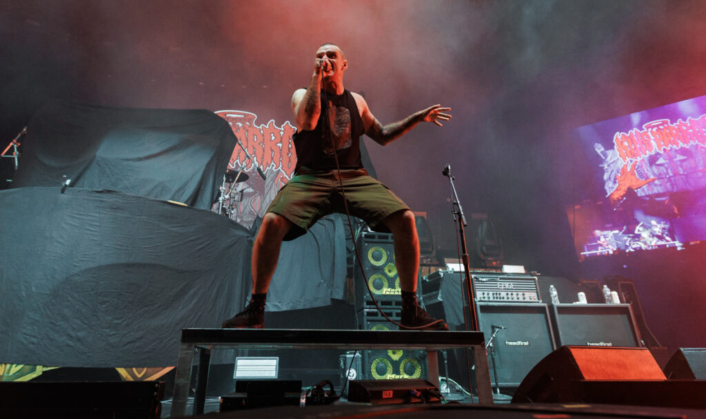 The first band on the stage was an Australian grindcore unit called King Parrot. They used the strategy of hit the crowd in the nose early and then often. This five-piece group was on the attack from the start and never let up. I’m sure I wasn’t alone in not knowing anything about this band but frontman Matt Young forced you to pay to attention to them and listen. The pace was frantic and chaotic and the music extremely raw and unfiltered. King Parrot was the shot of adrenaline that got the night rolling and it didn’t matter if you liked them, or hated them, they gave the crowd a lasting impression of what they are all about.