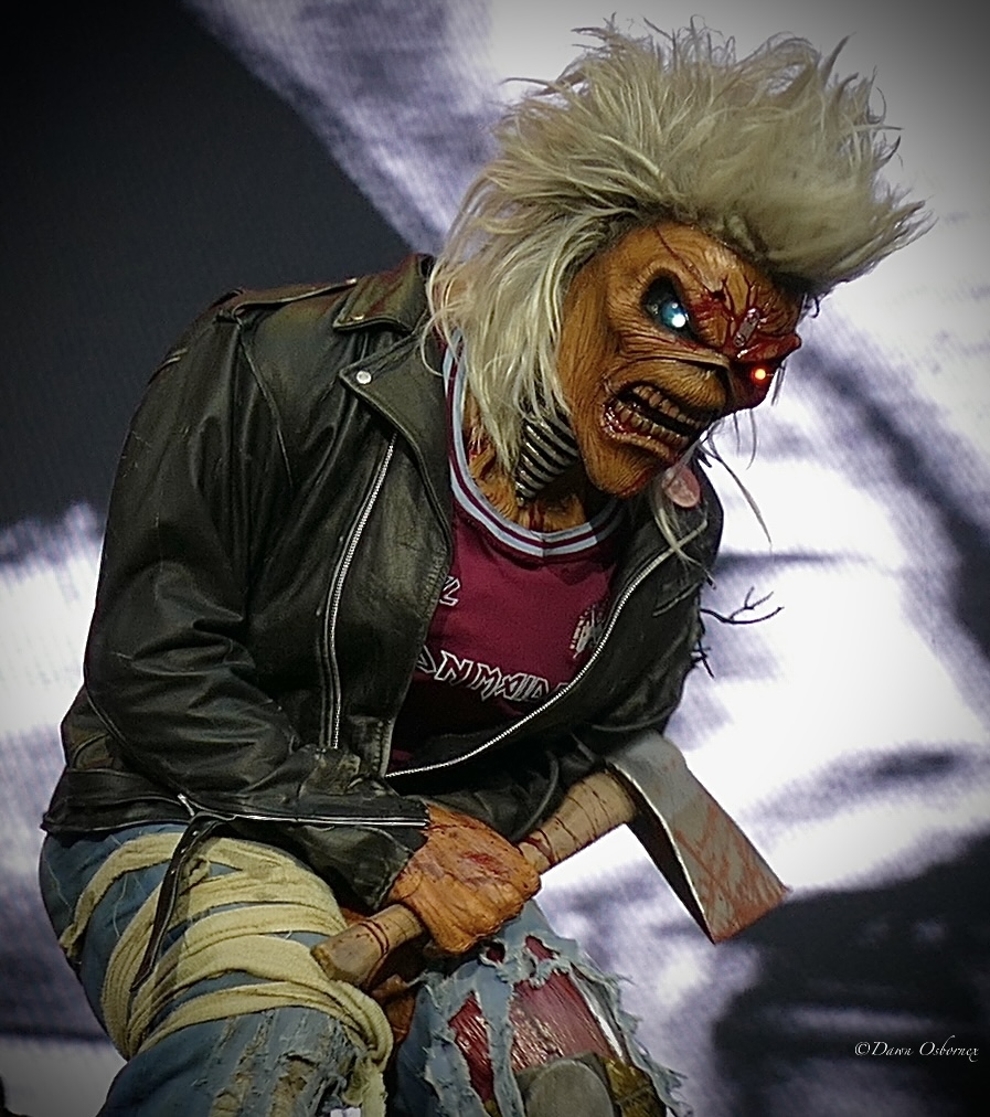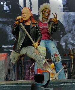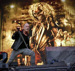 A mohawked, tomahawk wielding Eddie did come on for ‘Killers’ and swung his weapon at every band member in turn much to the crowd’s delight. The harmonised guitars got showcased in ‘Phantom’ while Bruce amped up the crowd, this track catching his imagination.