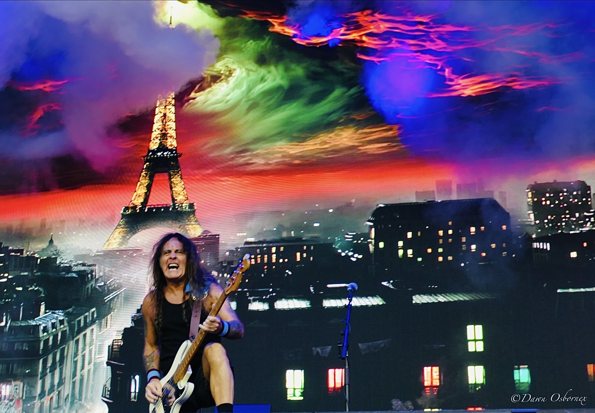 Iron Maiden have gone completely digital in their backdrops and so it is to scenes of wild stormy skies over the Eiffel Tower that we get ‘Murders In The Rue Morgue’.