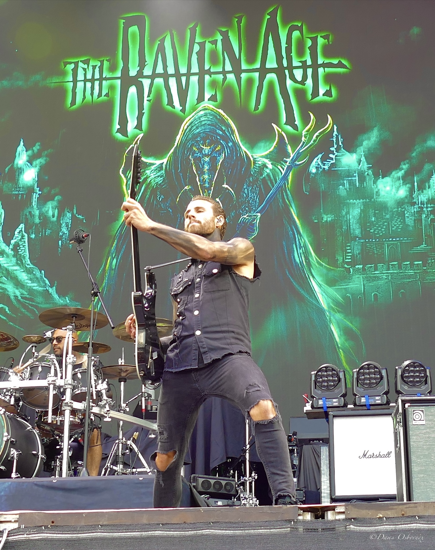 First up were The Raven Age who were extremely happy to be there. It doesn’t hurt, of course, when your guitarist is Steve Harris’ son, but they are still not taking anything for granted and said they were pinching themselves that it was actually happening. The singer bears a passing resemblance to Joey Tempest and even throws in a few horizontal and upside down mike stand bounces which Tempest stole in turn from David Coverdale.