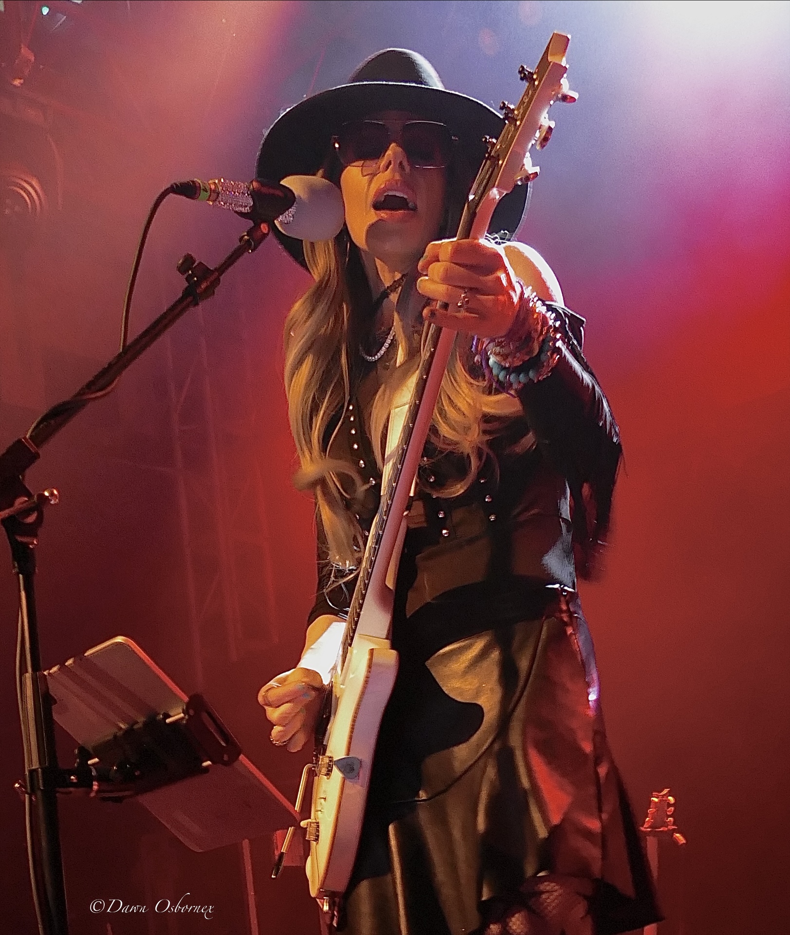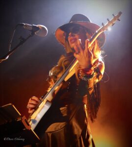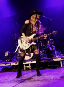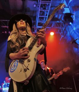Orianthi’s slimline white electric guitar with a monogrammed ‘O’ looks delicate and elegant, as does she, but with merely a bassist and drummer, they’re the loudest threesome I can remember. Did she slay with this beautiful looking axe, make that a yes!