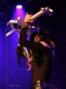 It’s an early show starting at 8.30 which is great as the crowd are literally gagging to see Orianthi and she doesn’t disappoint. Launching into ‘First Time Blues’ single off her new album she wastes no time launching shapes into the heavy riffs, somehow still managing to sing with effortlessly rich tones and look perfect in her trade mark hat with western style hat-band and pencil slim black over the knee high heeled boots, she has and does it all!