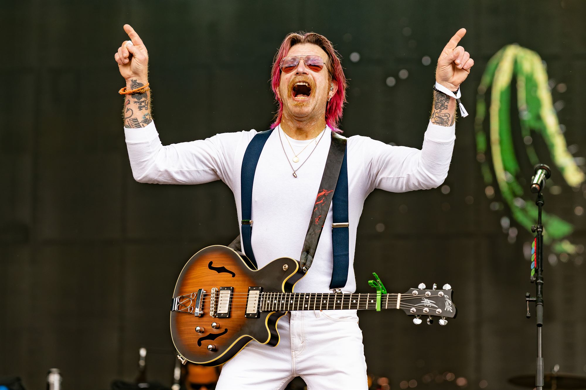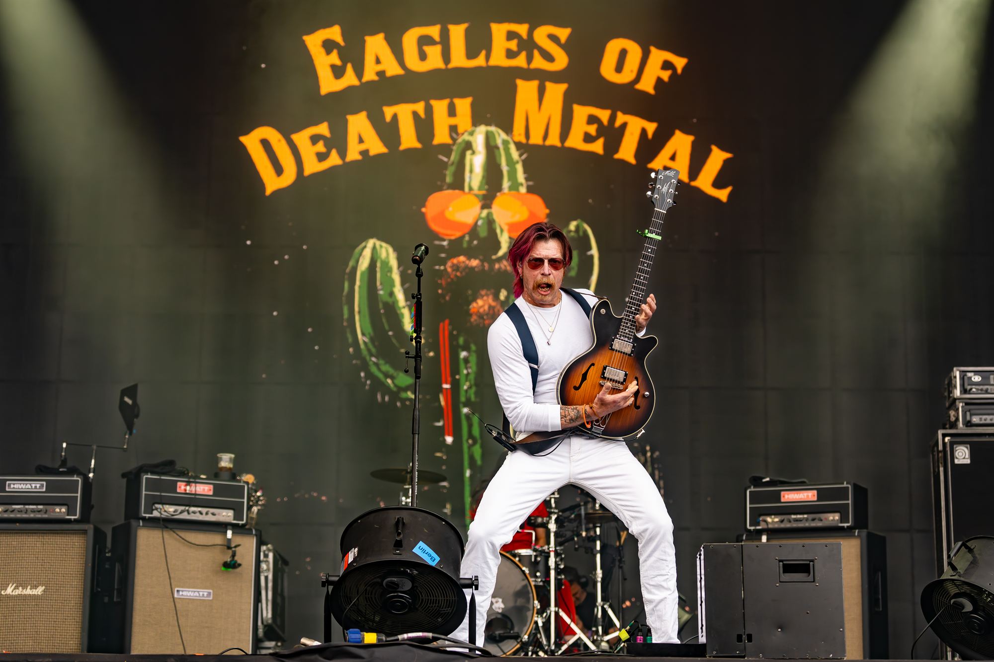Eagles of Death Metal hit the stage in the middle of what was a sunny afternoon at that point and look like they own rock n roll.