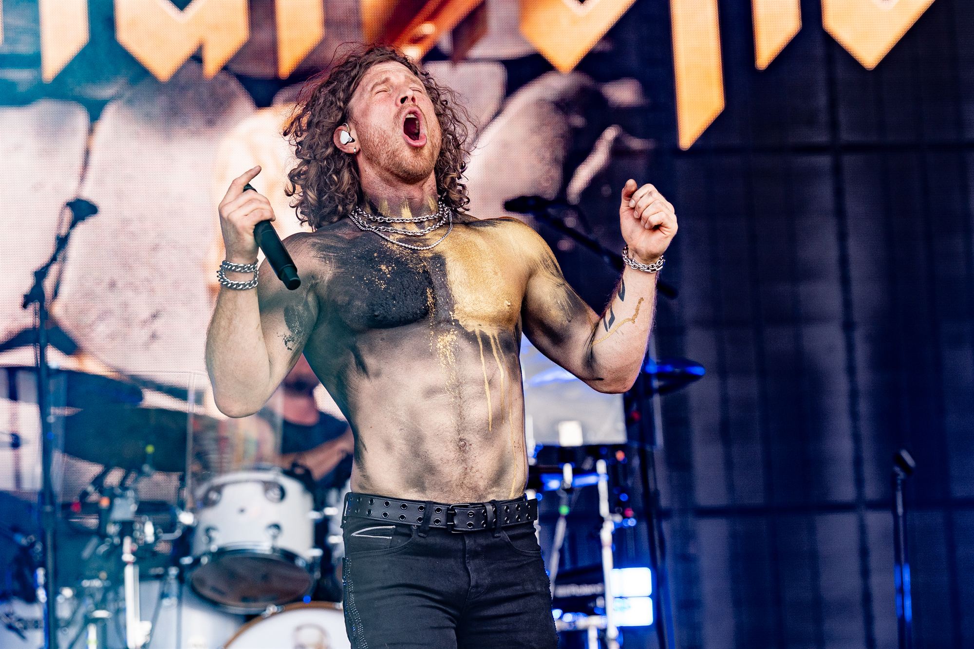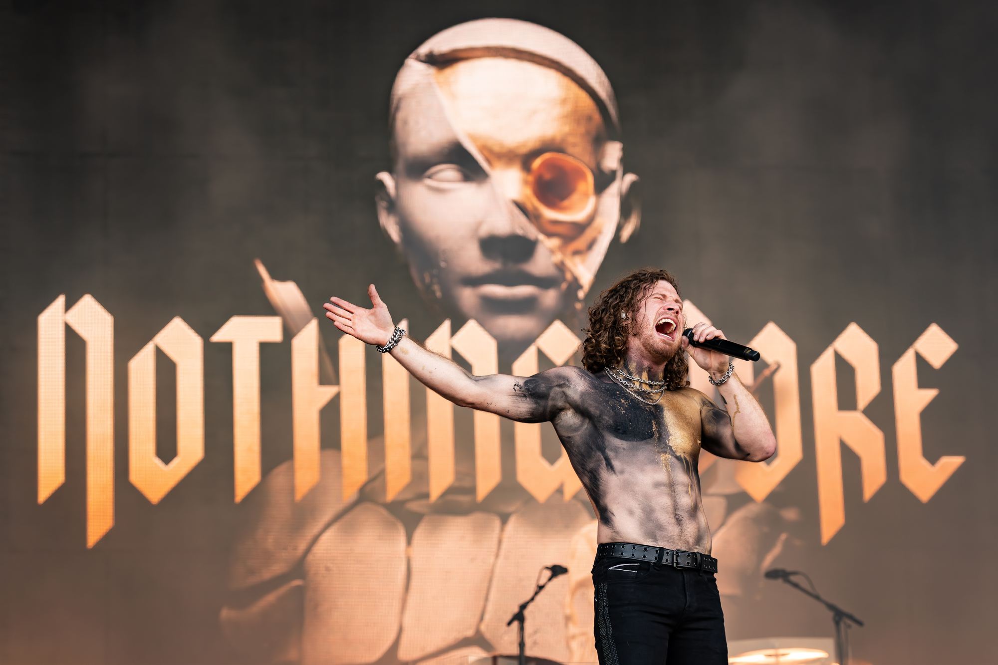 Anybody who stayed in their tent missed an absolute treat as Nothing More delivered a blisteringly good set. Singer Jonny Hawkins barefoot and bare chested having undergone a golden spray paint job, comes across like a cross between Eddie Vedder and Michael Hutchence.