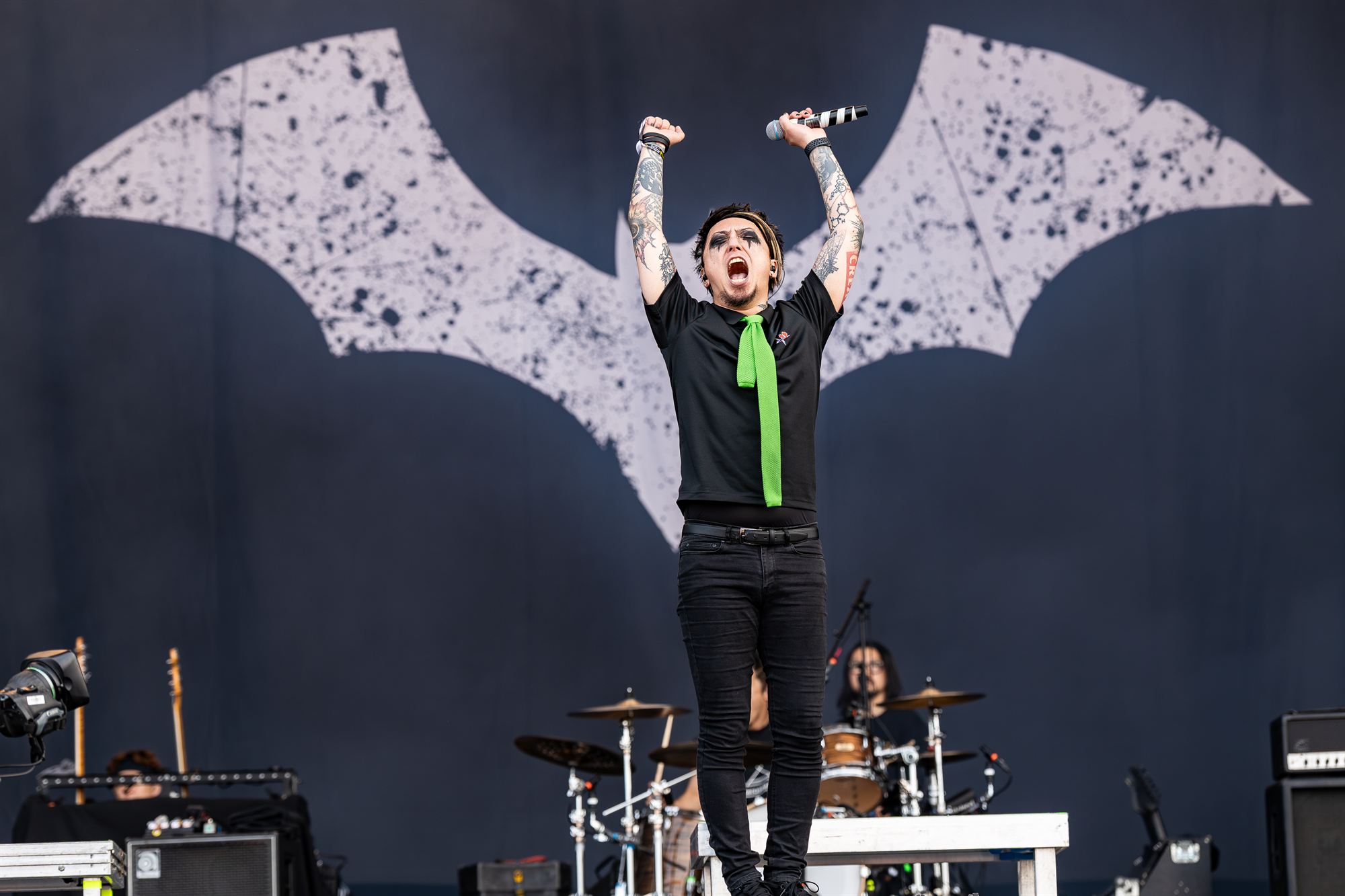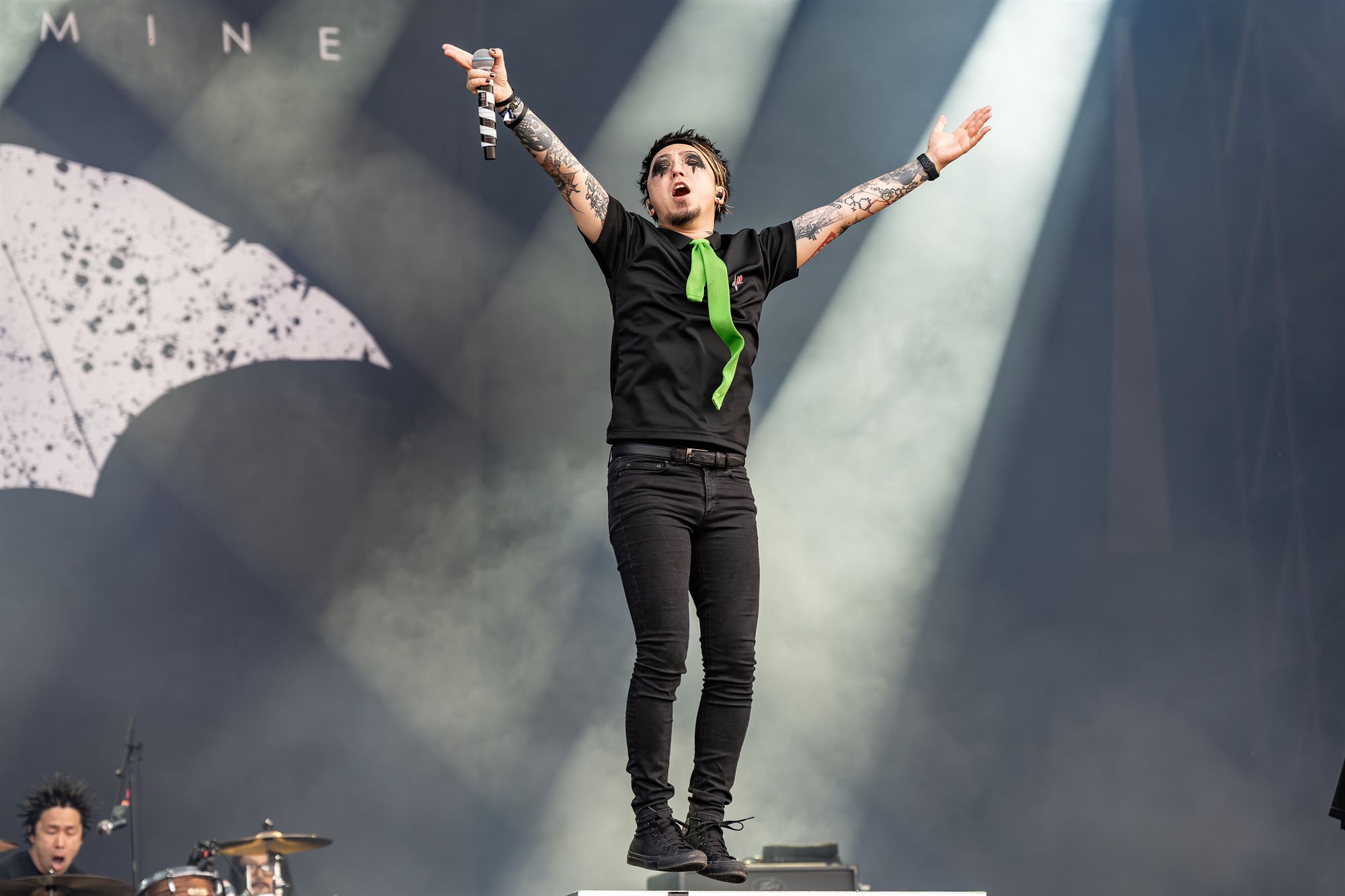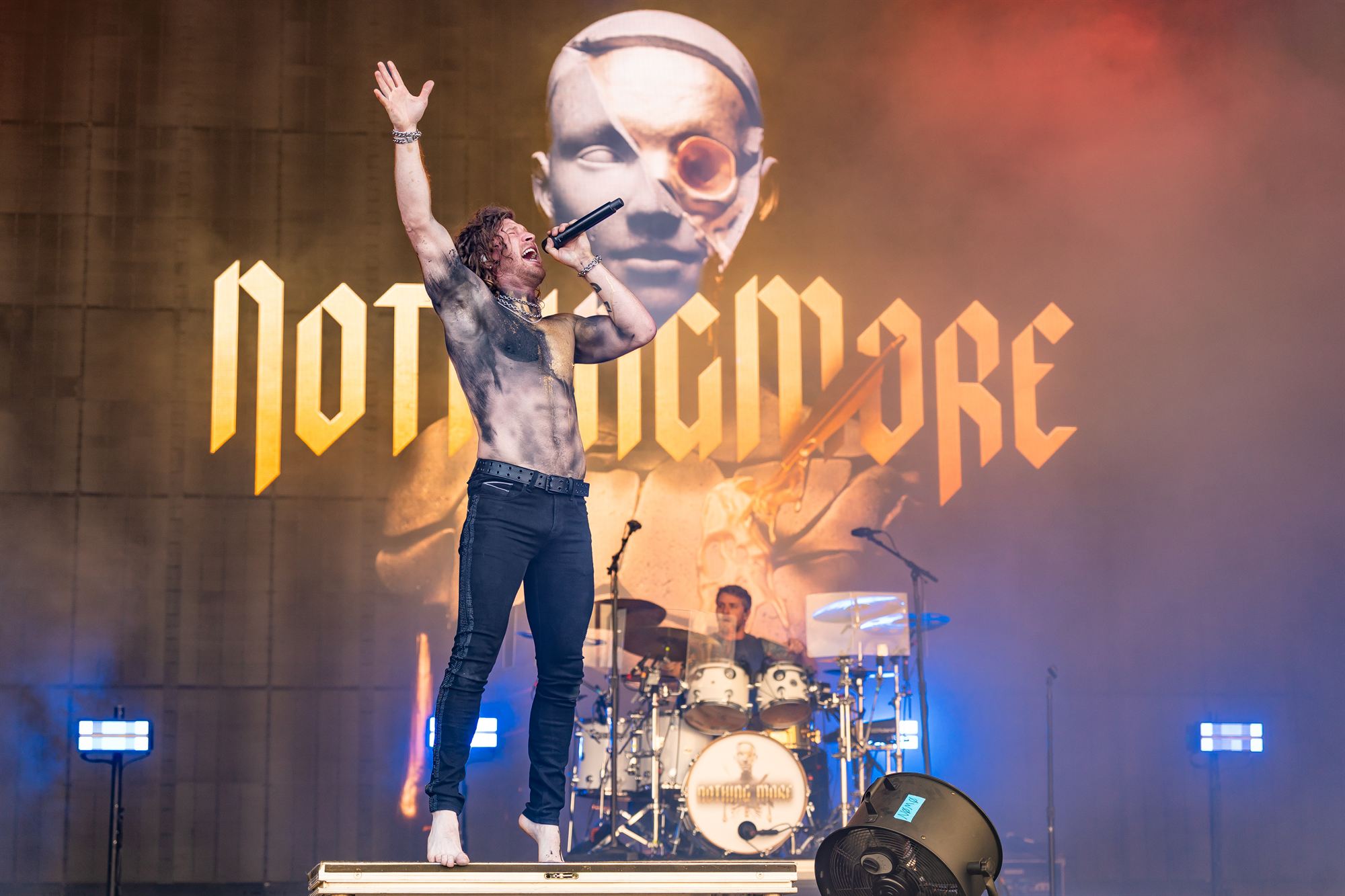 Nothing More end up with a rousing drum beat ending, as two roadies who must be suffering from hearing damage, carry floor toms into the crowd for Hawkins to relentlessly pound. If you get a chance to see them, do, you won’t be disappointed.