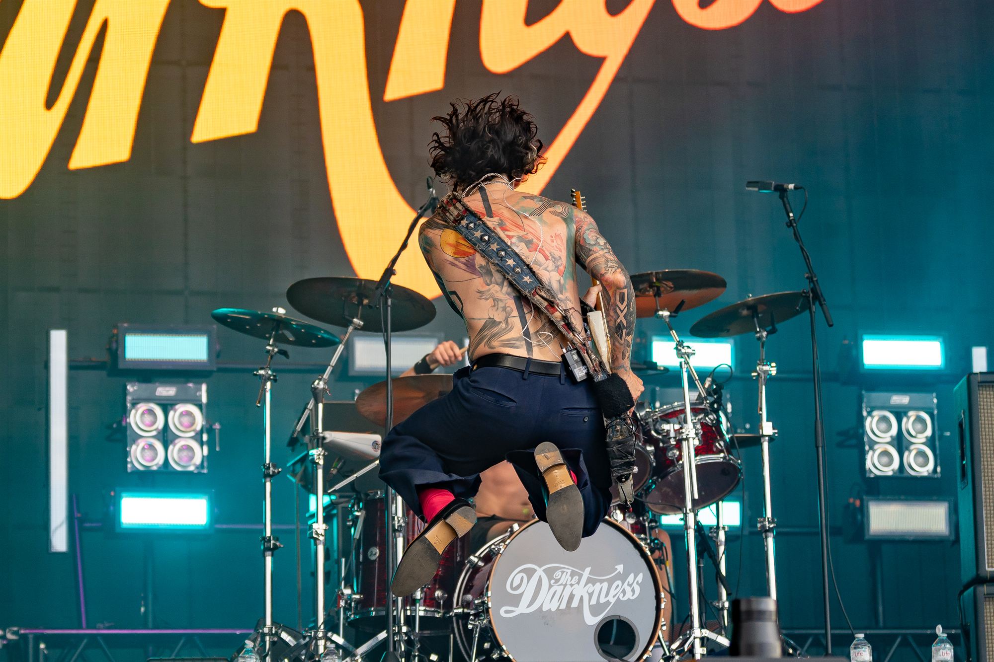 The Darkness start with “Rock n Roll Party Cowboy” from the Dreams on Toast album, and that’s what you need to know, that’s what you want right now. With more than a nod to ZZ Top they sing…