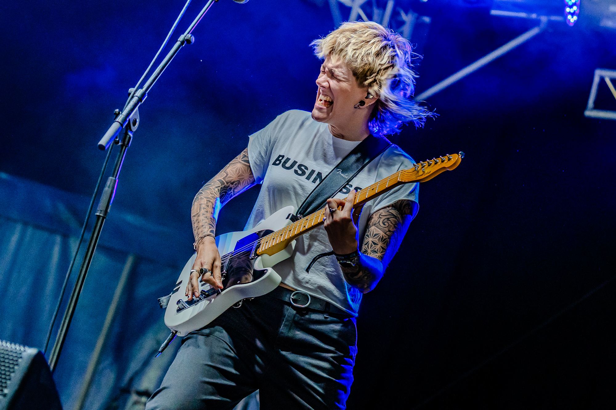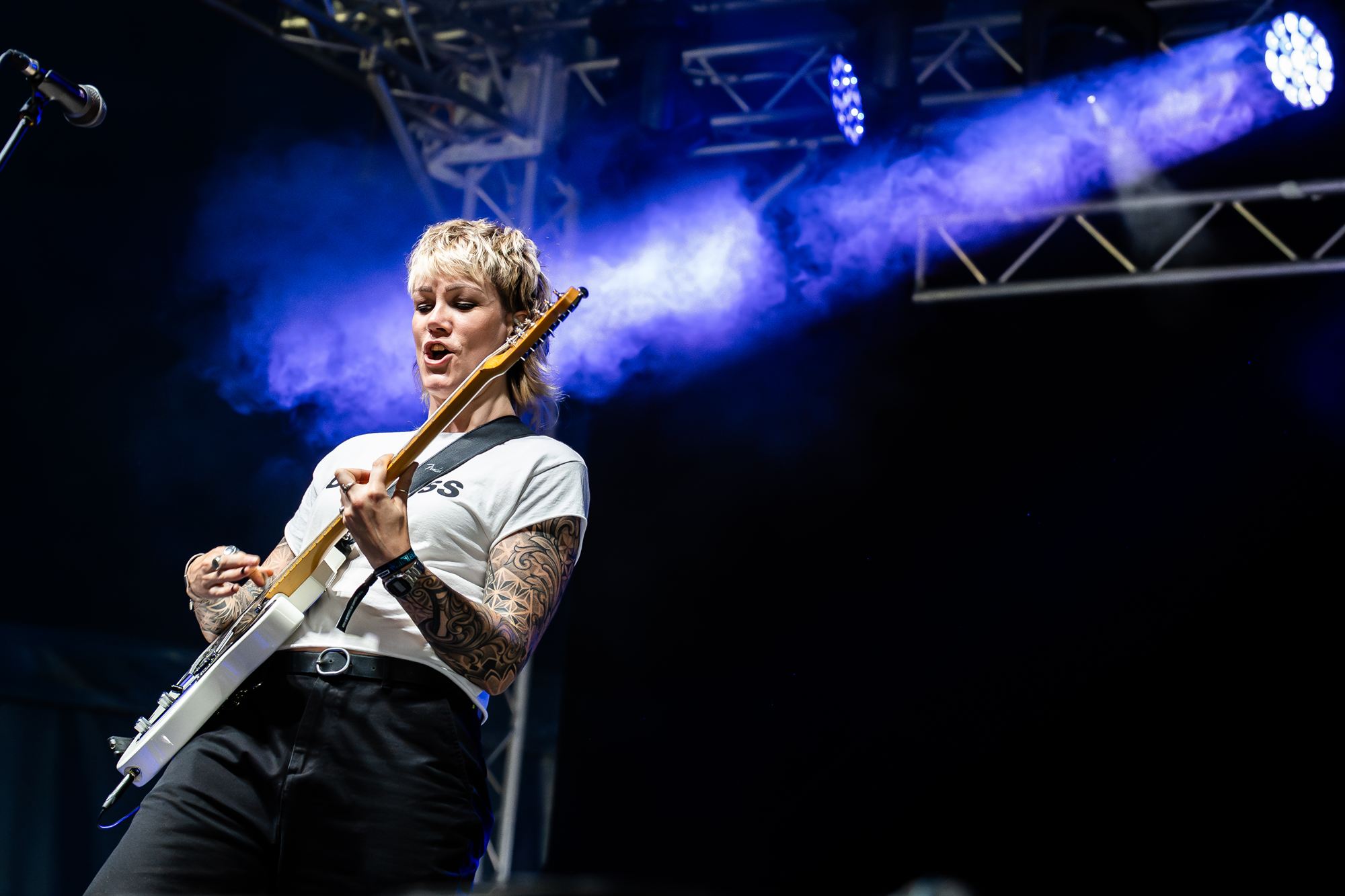 Life’s a fight is the message in a mix of heartfelt lyrics of personal emotions politics and sexuality, that’s attracting a mixed bag of an audience, from earnest looking mums and girls, to a ten year old with a mohican cheerfully indulging in crowd surfing.
