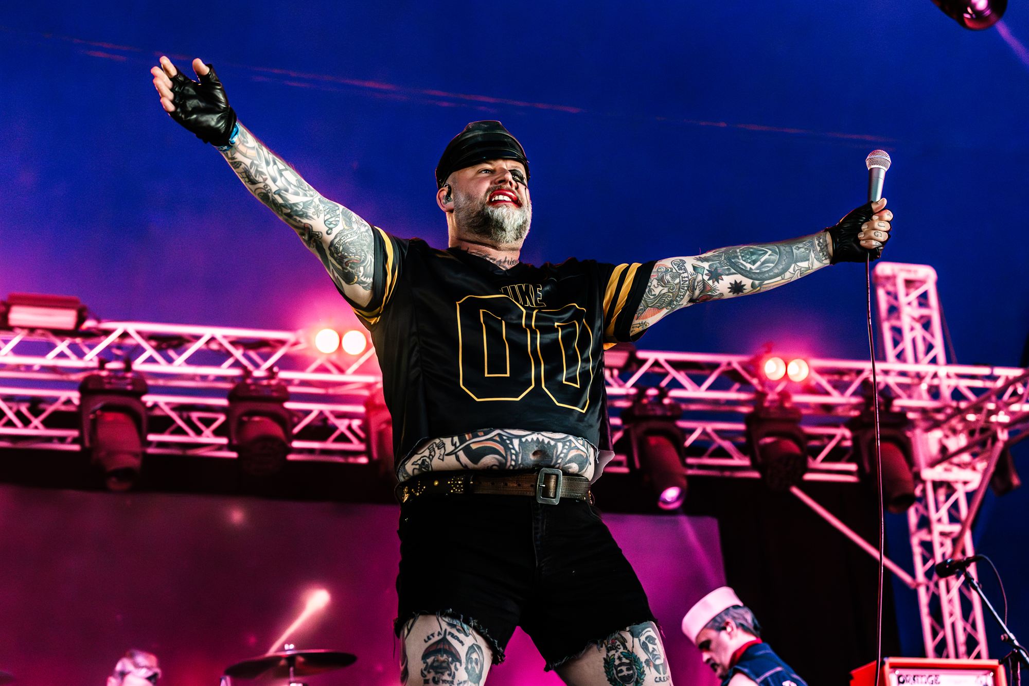 Lead singer Anthony “Duke of Nothing” Madsen-Sylvester appears in make-up sweaty denim shorts and a leather cap looking like a shocking cross between Rob Halford and Matt Lucas.