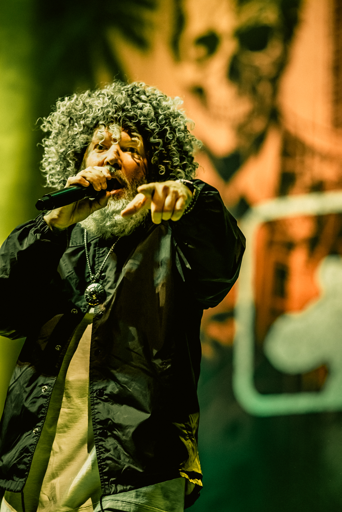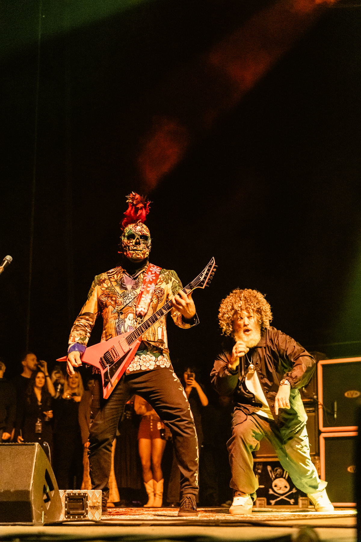 Durst, seemingly into his dad vibes era, rocking grey curls and a beard burst onto the stage with the playfulness and glee of a teenager. Meanwhile, Wes Borland—true to form—took the stage in an elaborate, colorful Day of the Dead-inspired costume, looking like he had stepped straight out of a surreal fever dream.