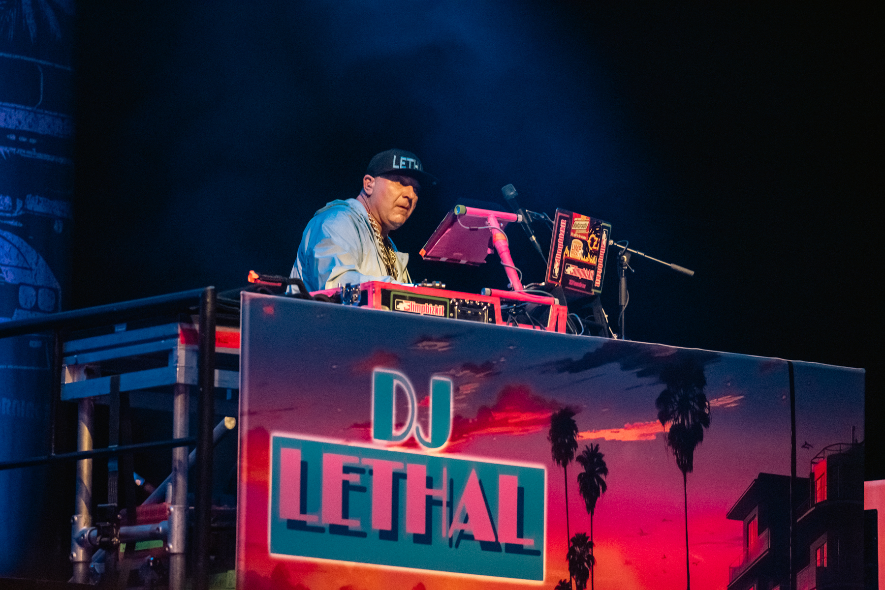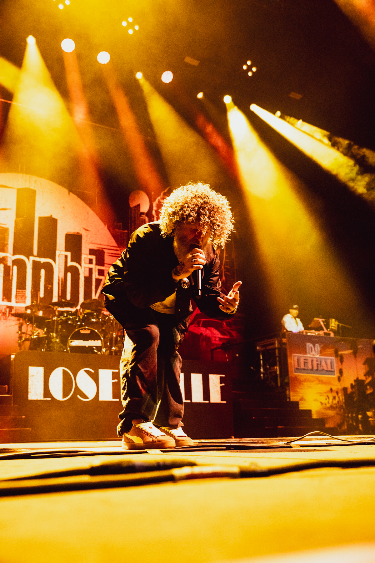 Bringing Loserville to 12,500 fans, the band took the stage against a Miami Vice-inspired backdrop bathed in fuchsia neon, curling with ’80s aesthetics. Seeing original members—John Otto (drums), Sam Rivers (bass), Wes Borland (guitar), and DJ Lethal (turntables)—together was a thrill.