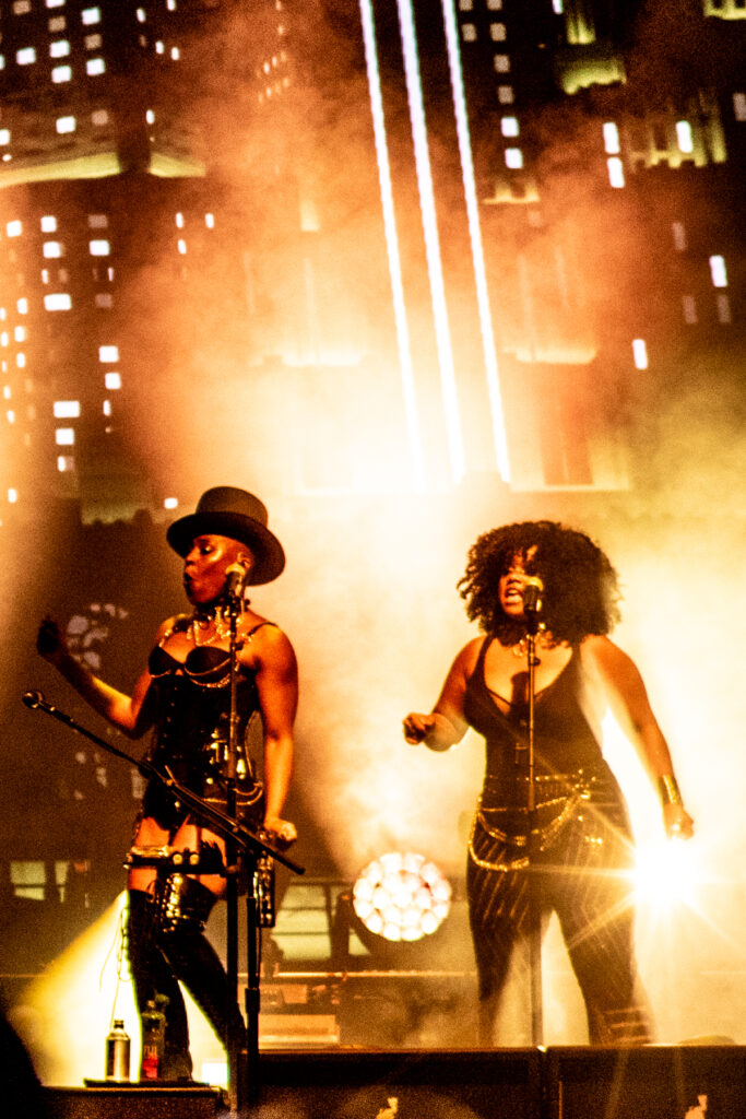 Backing vocalists Kitten Kuroi and Jessica Childress didn’t just support; they commanded. Their presence was sensual and powerful, especially when Childress stepped forward for a show-stopping duet on Gimme Shelter, Idol’s fiery Rolling Stones cover.