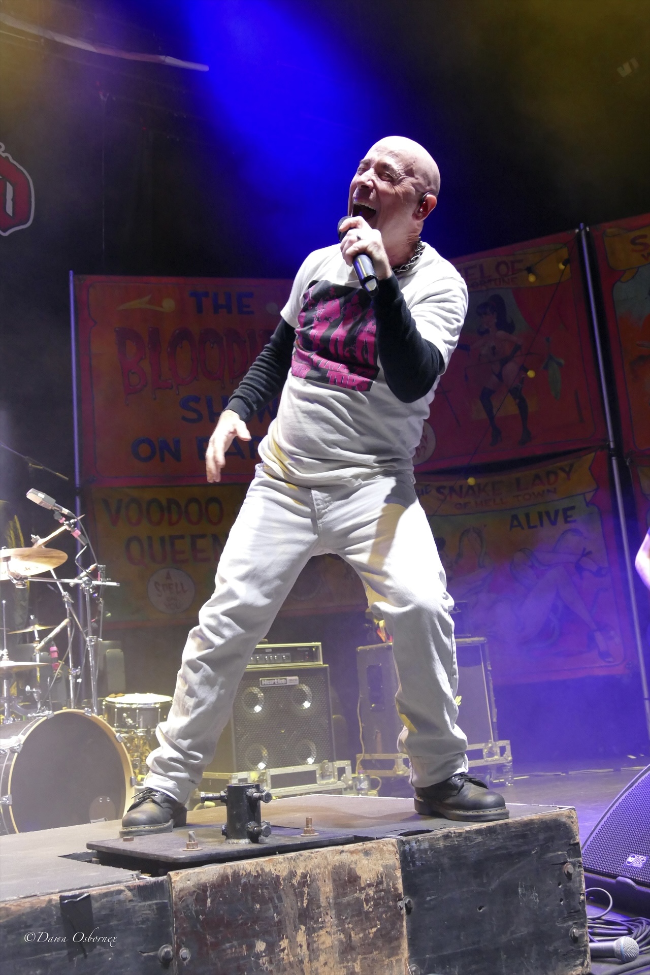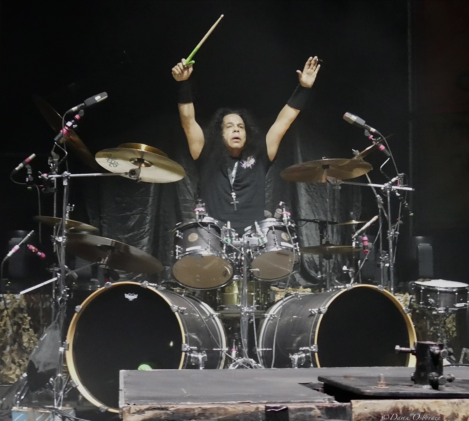 On to the show! Armored Saint were main support precursored by their drummer Gonzo Sandoval coming on in a top hat and robe. They had some technical problems, and singer John Bush’s microphone stopped working for a while, leaving him to have to use the microphone for backing vocals stage right. He simply made a comment about “when shit goes south on stage” and “it’s pissing me off so will make a great show”.